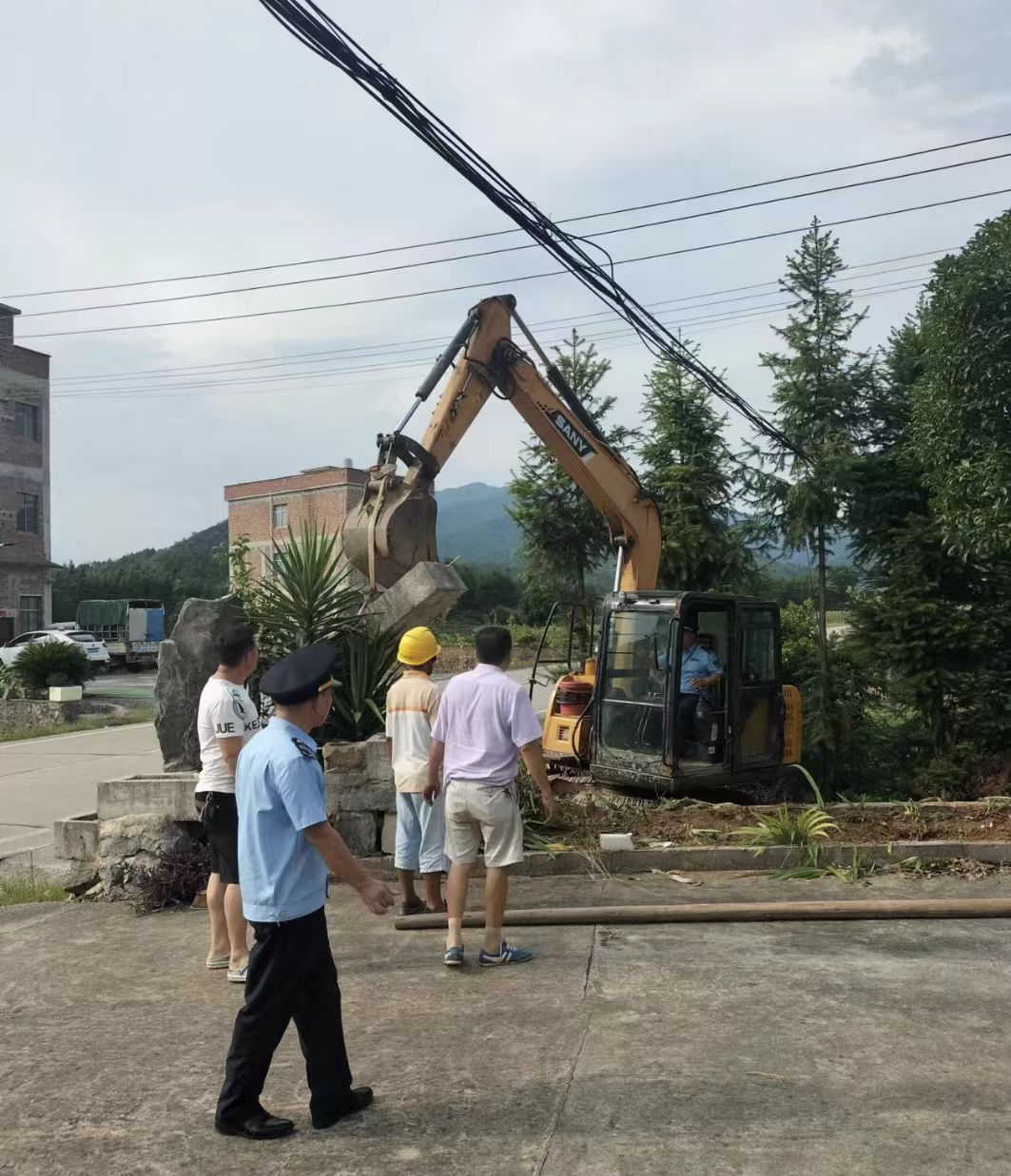 近日,柏家坪镇综合执法大队与县交通局交通运输执法大队联合执法,对柏家坪镇可亭村村民欧阳XX房前的假山进行了拆除。村民欧阳XX因迷信风水,在自家房前修建一座假山,该假山位置正好位于自然村道路出口,遮挡了省道S229线过往、进出车辆的视线,存在道路交通安全隐患。