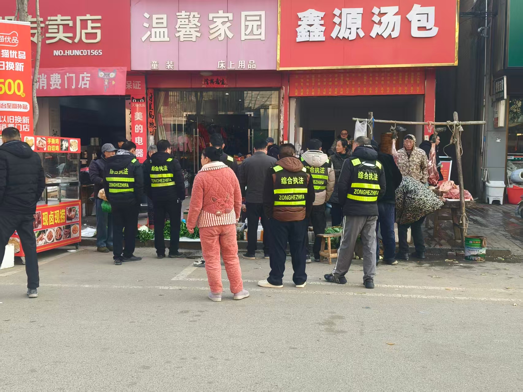 行动前,镇长谢军作动员部署。工作人员随后分为三组,沿重点路段巡查,整治占道经营、乱摆摊、乱搭乱建等行为。整治过程中,工作人员主动协助商户清理店外随意堆放的桌椅、棚子、塑料盆等杂物;对占道经营的流动摊贩耐心劝导,引导其进入规范经营区域;对非机动车驾驶人不规范停车行为予以劝阻整改;对经营户“门前五包”环境卫生予以提醒,要求严格落实等。
