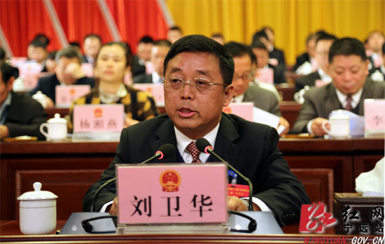 刘卫华指出,这次县第十七届人民代表大会,把县委的决策通过法定程序转化为全县人民的共同意志,进一步凝聚了共识、明确了目标、细化了措施。刘卫华希望各级各部门要不忘初心、戮力同心,创新开放、苦干实干,再创新的辉煌。要在理性研判中坚定信心,始终保持一流状态;要在自我加压中苦干实干,努力创造一流业绩,加油干、快脱贫、奔小康、迈新程,解放思想解难题、改革创新创新业、创新争优竞一流,不断推动宁远事业阔步前进,要干出经济发展速度、干出项目投资强度、干出生态底色亮度、干出改革开放深度、干出脱贫攻坚力度,确保2017年成功脱贫摘帽、2019年全面建成小康;要在敢于担当中狠抓落实,全面展示一流作风,全县各级各部门要知责担当、共识共为,再鼓干劲、再加马力,以坚定的目标、坚决的行动、坚实的作风,全力推动各项工作落实落地、走在前列;要在同频共振中主动作为,充分彰显一流形象,推动全县经济社会快速发展。
