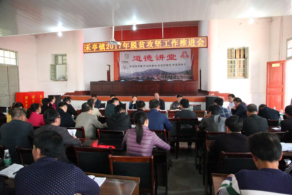 4月13日下午,禾亭镇召开2017年脱贫攻坚工作会,县委常委、组织部长王小丽参加会议并发言,禾亭镇党委负责人、联系村单位相关负责人、驻村“第一书记”、在家的贫困村支书参会。