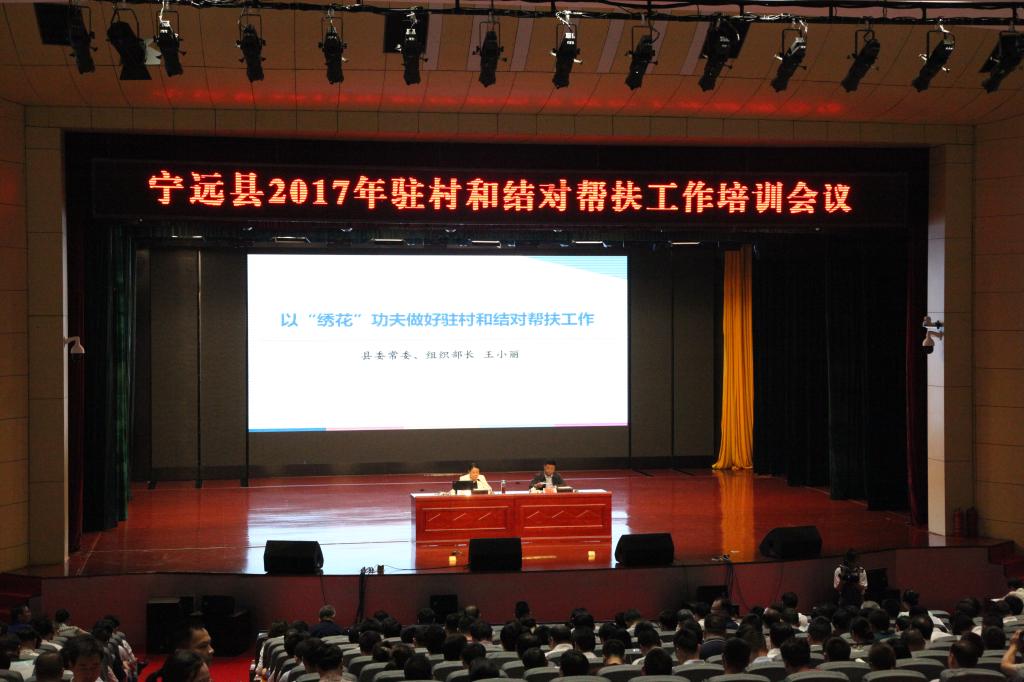 杜家毫书记到永州调研时指出:脱贫攻坚口号不要提太多,关键是下一番绣花功夫落实落小。5月19日上午,宁远县召开2017年驻村和结对帮扶工作培训,县委常委、组织部长王小丽就如何用“绣花”功夫做好驻村结对帮扶作专题培训,在驻村扶贫干部任前培训的基础上,坚持问题导向,从实处着手破解帮扶难题,再次为千名扶贫党员干部集体“充电”。