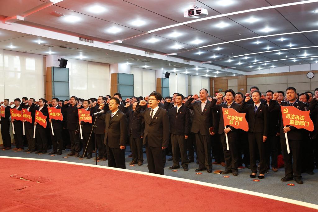 (县委常委、组织部长雷军平代表全县组工干部庄严宣誓)