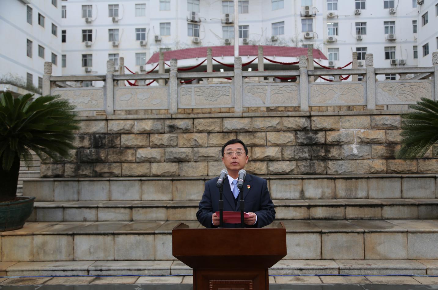 2月11日上午,新春节后上班的第一天,我县500余名机关干部职工在机关大院举行庄严的升国旗仪式,大家以饱满的政治热情和务实的工作作风,迎接新春上班第一个工作日。升国旗仪式由县委副书记、县长唐何主持,永州市副市长、宁远县委书记刘卫华参加并讲话。