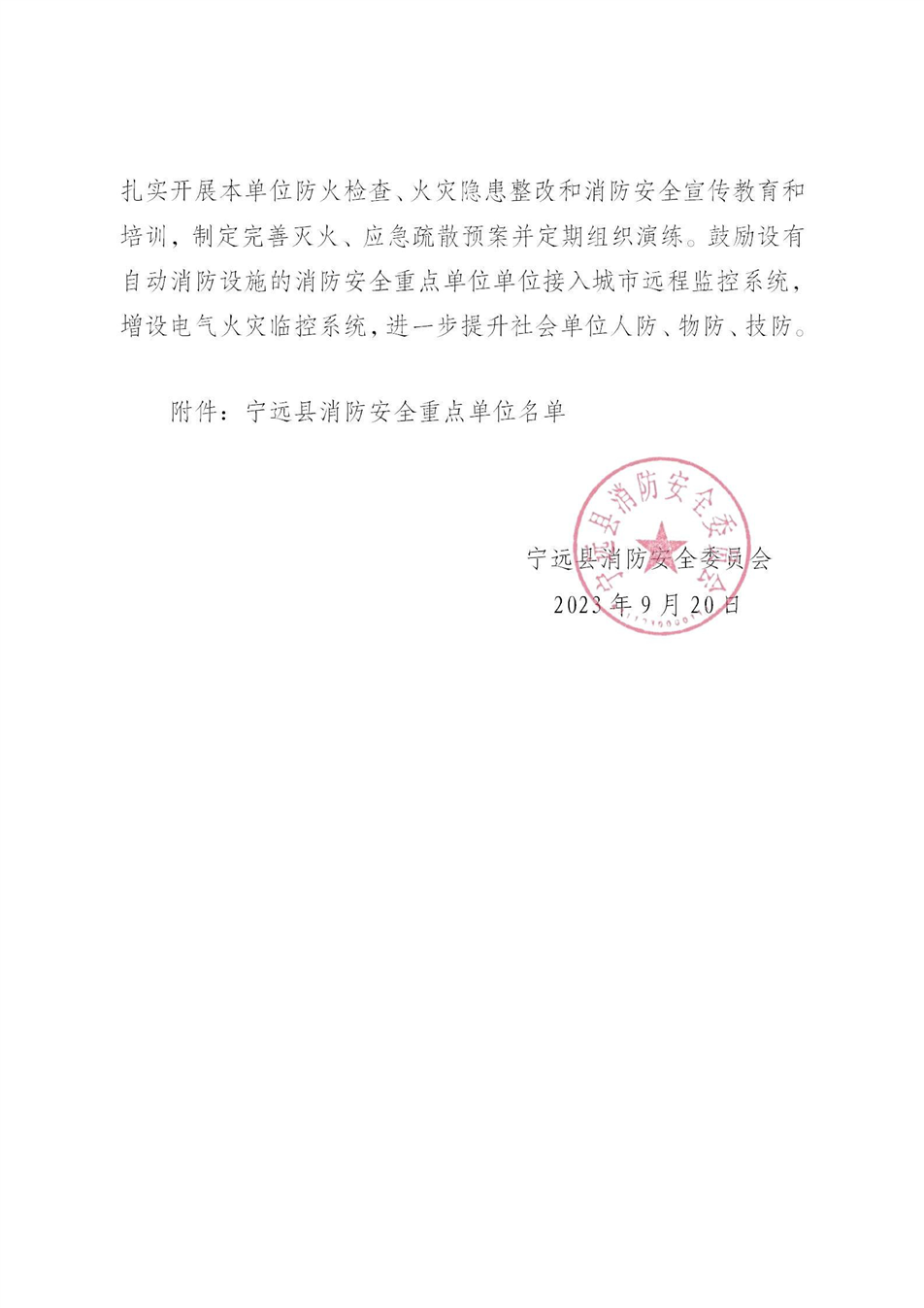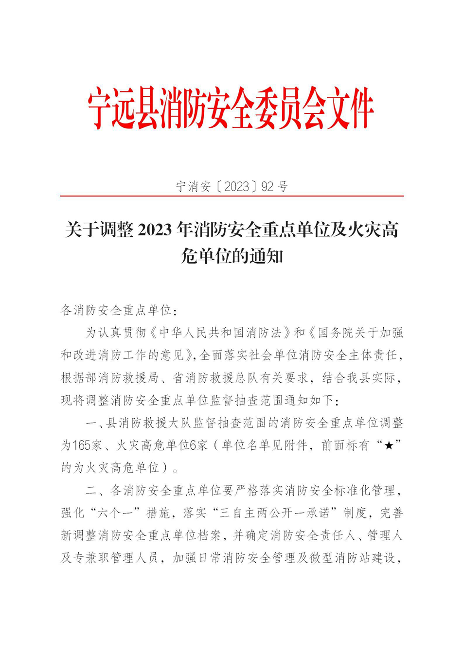 关于调整2023年消防安全重点单位及火灾高危单位的通知
