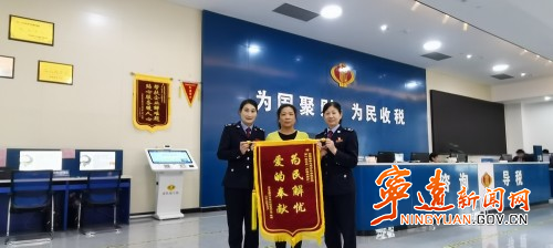 近日,宁远县浙湘粉体材料有限公司办税人侯女士为县税务局办税服务厅送来一幅带有“为民解忧 爱的奉献”字样的锦旗。