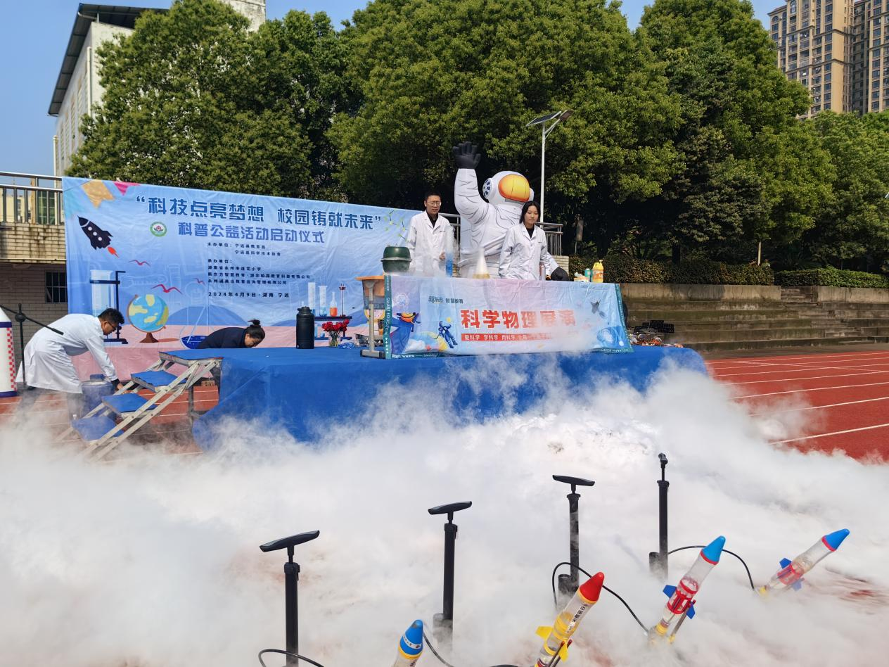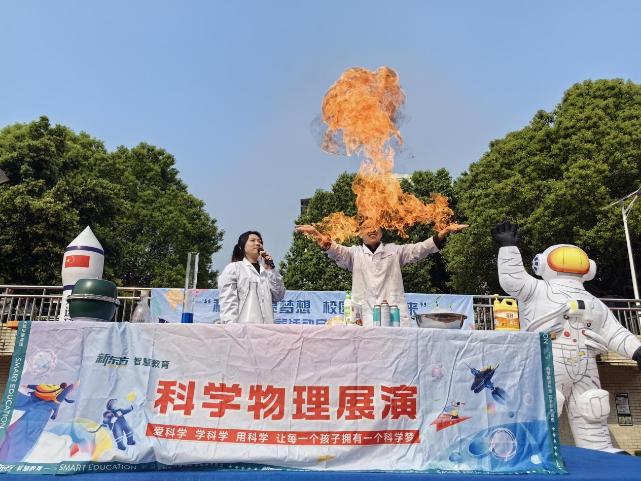 科普展演活动中,科技工作志愿者肖老师和学生们进行了有趣的科学实验互动小环节,现场和学生们一起体验“火焰在掌上燃烧”“液氮蘑菇云”“瓶中瞬间起烟雾”“利用水的反冲力发射小火箭”“辣手摧花”等科学小实验,学生们充满着好奇,被科学小活动深深吸引。此次科普活动,为学生们提供了一个接触科学的平台,让大家在轻松愉悦的“双减”氛围中感知科技的魅力。同时,也增强了同学们从小爱科学、学科学、用科学的意识。