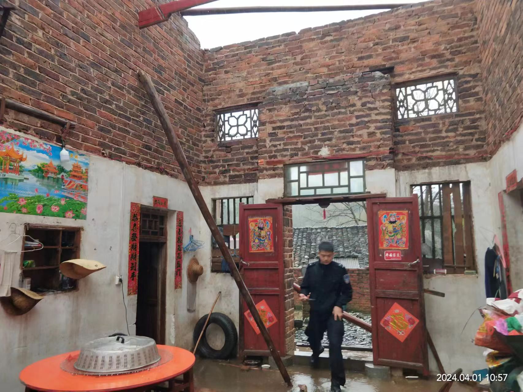 4月1日上午,宁远县强风肆虐,出现短时强降雨。上午10时许,一阵急促的报警铃声响起,宁远县公安局仁和派出所接到一名群众报警求助称:仁和镇高家村4组有一处房顶坍塌,一名老人受伤被困,请求民警救助。
