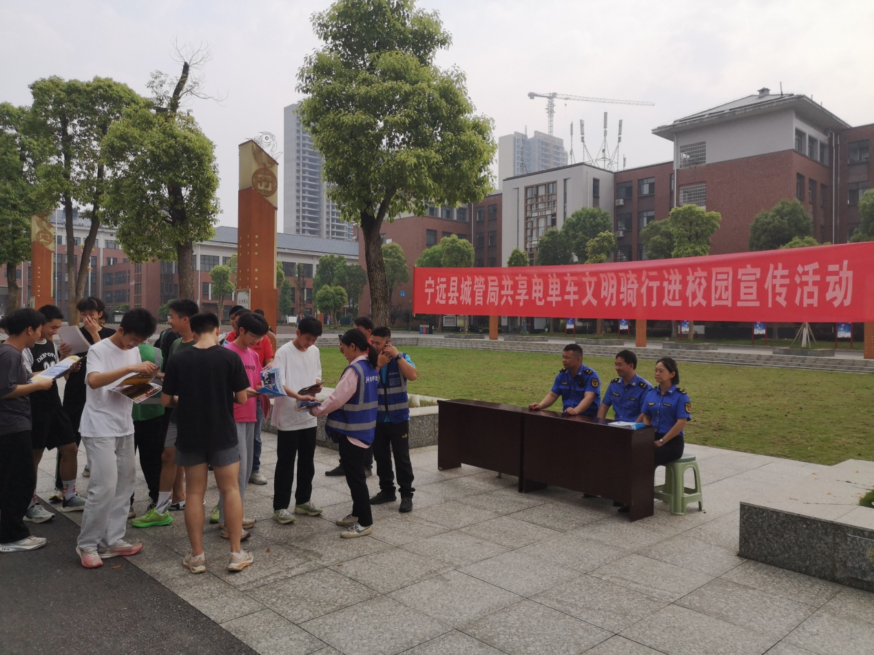共享电单车以其绿色、环保、时尚、便捷的出行方式,备受市民喜爱,但在共享电单车的使用过程中,存在乱停乱放现象。近日,宁远县城管执法局联合共享单车运营企业,来到宁远二中开展共享电单车文明骑行进校园宣传活动。