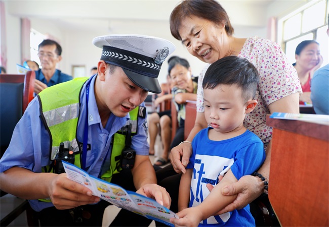 活动中,民警通过座谈会、张贴海报、走村入户、农村大喇叭播报等形式,列举发生在辖区的典型道路交通事故案例,以“身边事教育身边人”,为村民尤其是“一老一小”群体讲解酒驾醉驾、无证驾驶、面包车超员、农用三轮违法载人等交通违法行为的危害和“一盔一带”的重要性,并对不戴安全头盔、违法载人等交通违法行为进行教育劝导,在过往摩托车、电动车尾部粘贴反光贴,提醒大家今后在出行时一定要把安全放在首位,牢固树立“被看见才安全”的理念,遵规守法出行。