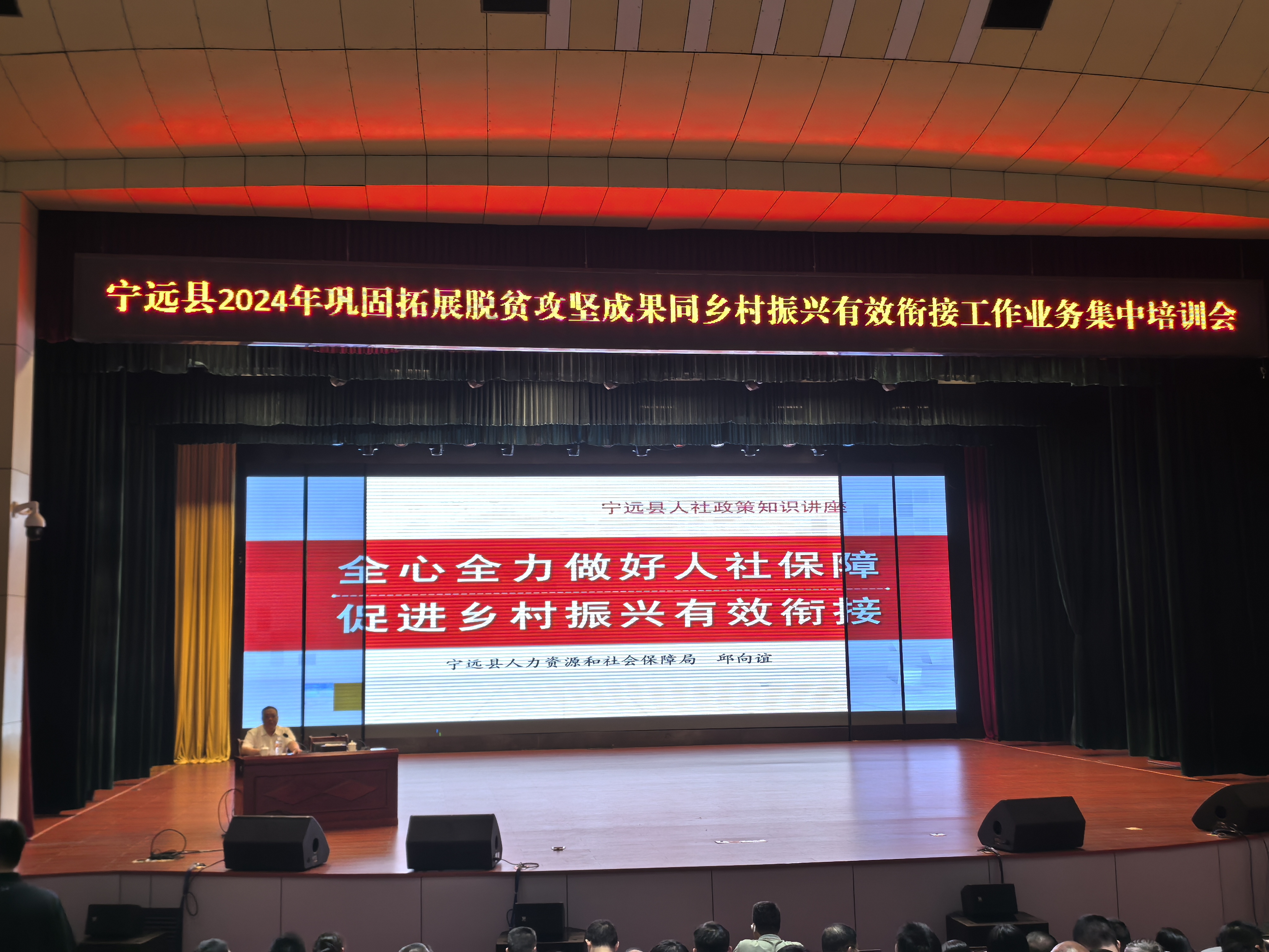 为进一步在巩固拓展脱贫攻坚成果同乡村振兴有效衔接的工作中注入社保力量。8月28日下午,县人社局党组书记、局长邱向谊在县委大院 101 会议室,为全县各乡镇(街道)分管乡村振兴、农业农村工作的负责人、乡村振兴站长,省、市、县派乡村振兴驻村工作队成员,农村(社区)党组织书记等1200余人,做了题为《全力做好人社保障 有效衔接乡村振兴》人社业务知识讲座。