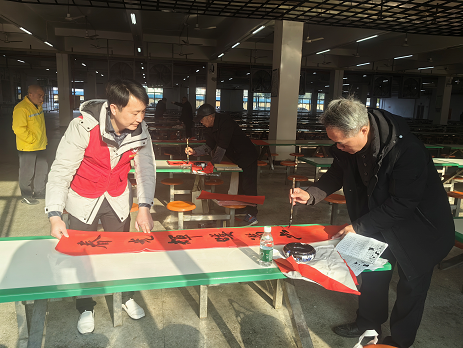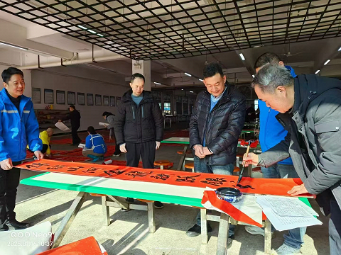 1月16日,宁远县“新春走基层.书法进企业”志愿服务活动在台商企业——华荣鞋业有限公司开展,来自县书画协会的书法家齐聚一堂,挥毫泼墨送祝福。