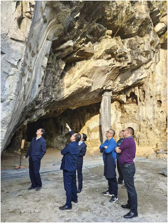 调研组首站来到湾井镇象岩、九疑瑶族乡玉馆岩、紫霞岩,实地考察《永州市摩崖石刻保护规定》落实情况。近年来,宁远县通过建立专项保护基金、引入数字化监测技术、强化文物执法等举措,推动摩崖石刻保护实现“一石刻一档案”,有效遏制了自然侵蚀和人为破坏现象。调研组对宁远县落实摩崖石刻保护工作给予肯定,并建议进一步挖掘石刻文化内涵,探索文旅融合发展路径。