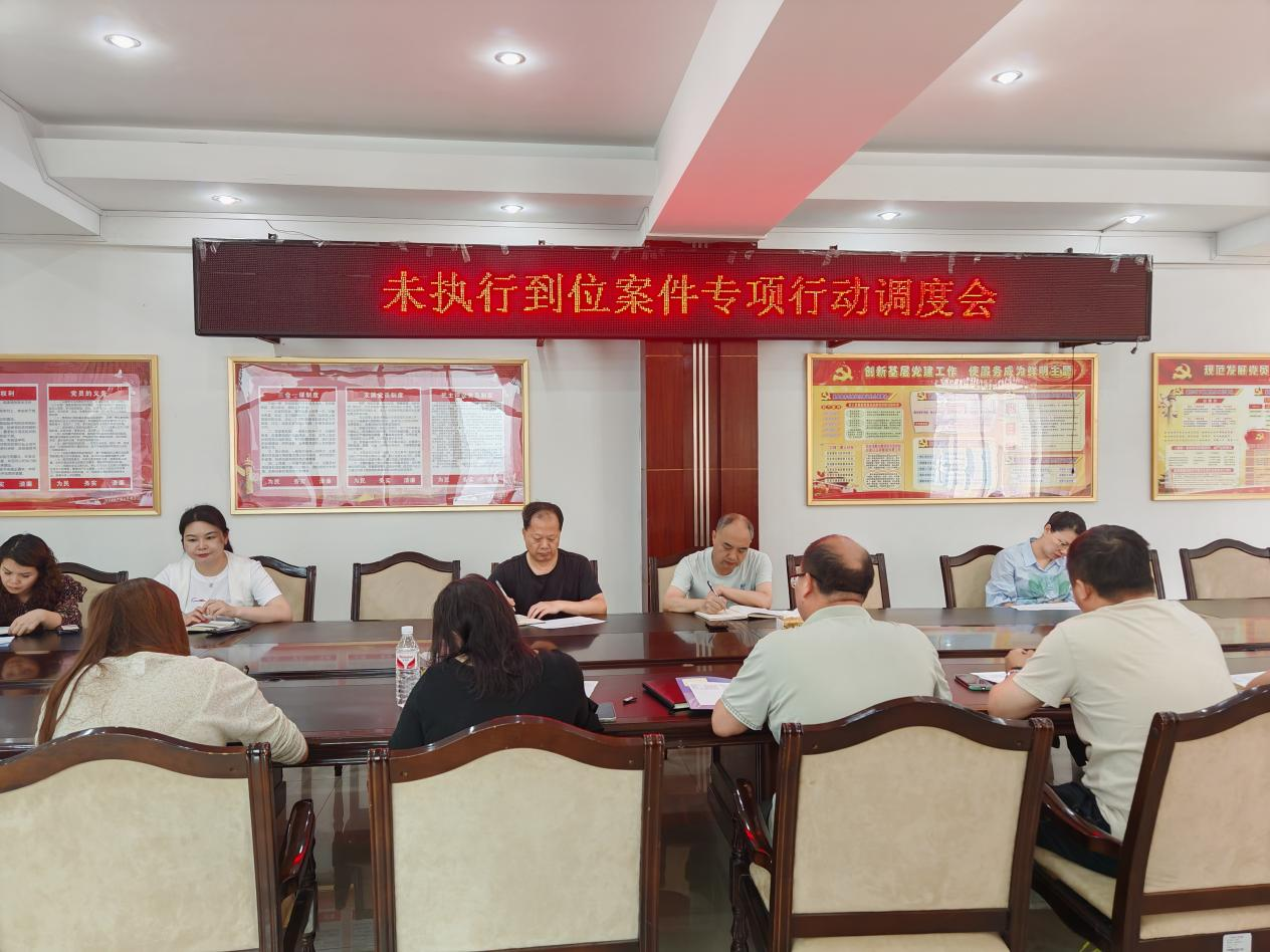 为深入贯彻落实最高人民法院“切实解决执行难”工作部署,坚决兑现胜诉当事人的合法权益,增强人民群众的司法获得感,近日,宁远县人民法院召开“未执行到位案件”专项行动调度会。院党组书记、院长黄文德出席会议并作重要讲话,党组成员、副院长肖文凯主持会议,在家院领导、各部门负责人及相关干警参加会议。