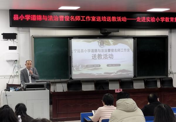 (通讯员 李红英)12月12日上午,宁远县道德与法治曹俊名师工作室送教活动在实验小学举行,印山小学组织全体道德与法治专兼职教师参与,深化校际教研交流,提升教学质量。