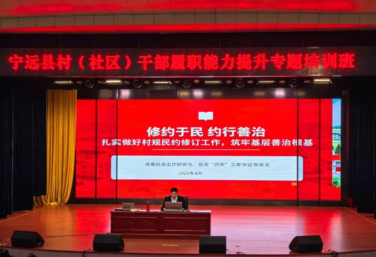 (通讯员 彭琳 何佳豪)近日,县委社会工作部部长、县委“两新”工委书记黎登文以“修约于民 约行善治——扎实做好村规民约修订工作,筑牢基层善治根基”为题,在宁远县村(社区)干部履职能力提升专题培训班上作专题授课,全县2000余名村(社区)干部参加培训。