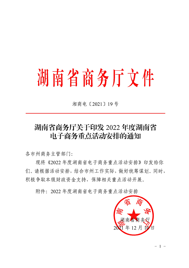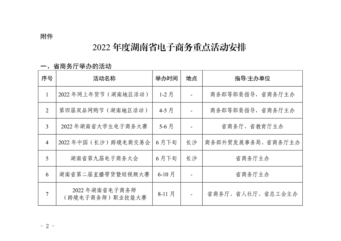 湖南省商务厅关于印发2022年度湖南省电子商务重点活动安排的通知