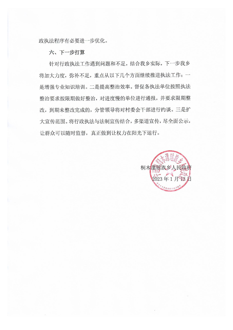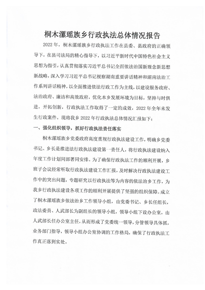 宁远县桐木漯瑶族乡2022年行政执法工作报告