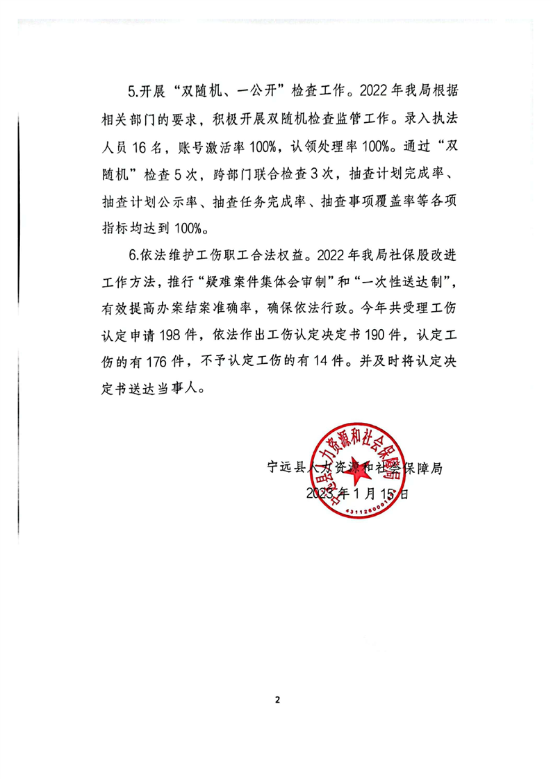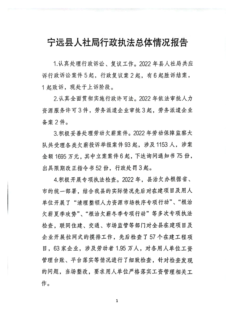 宁远县人社局2022年行政执法工作报告