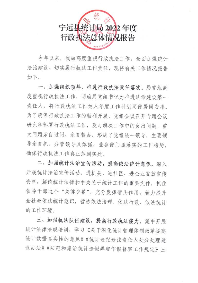 宁远县统计局2022年行政执法工作报告