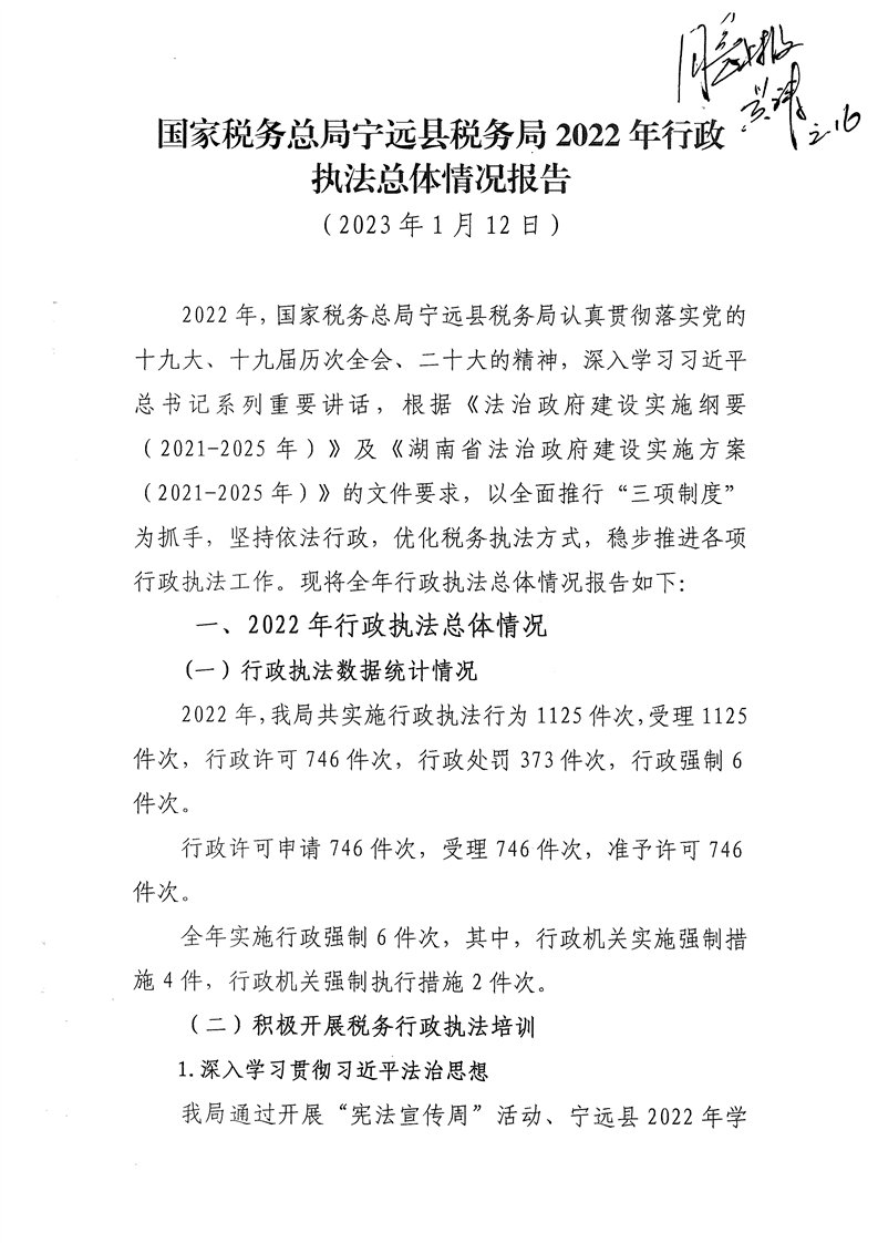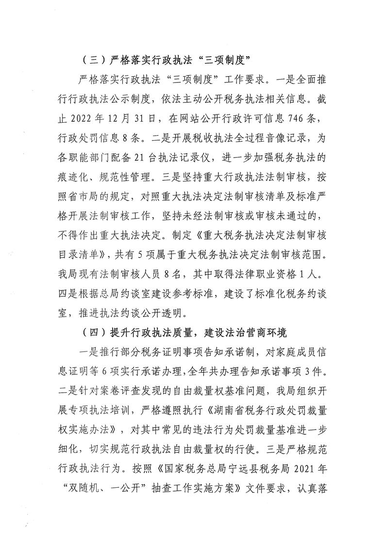国家税务总局宁远县税务局2022年行政执法工作报告