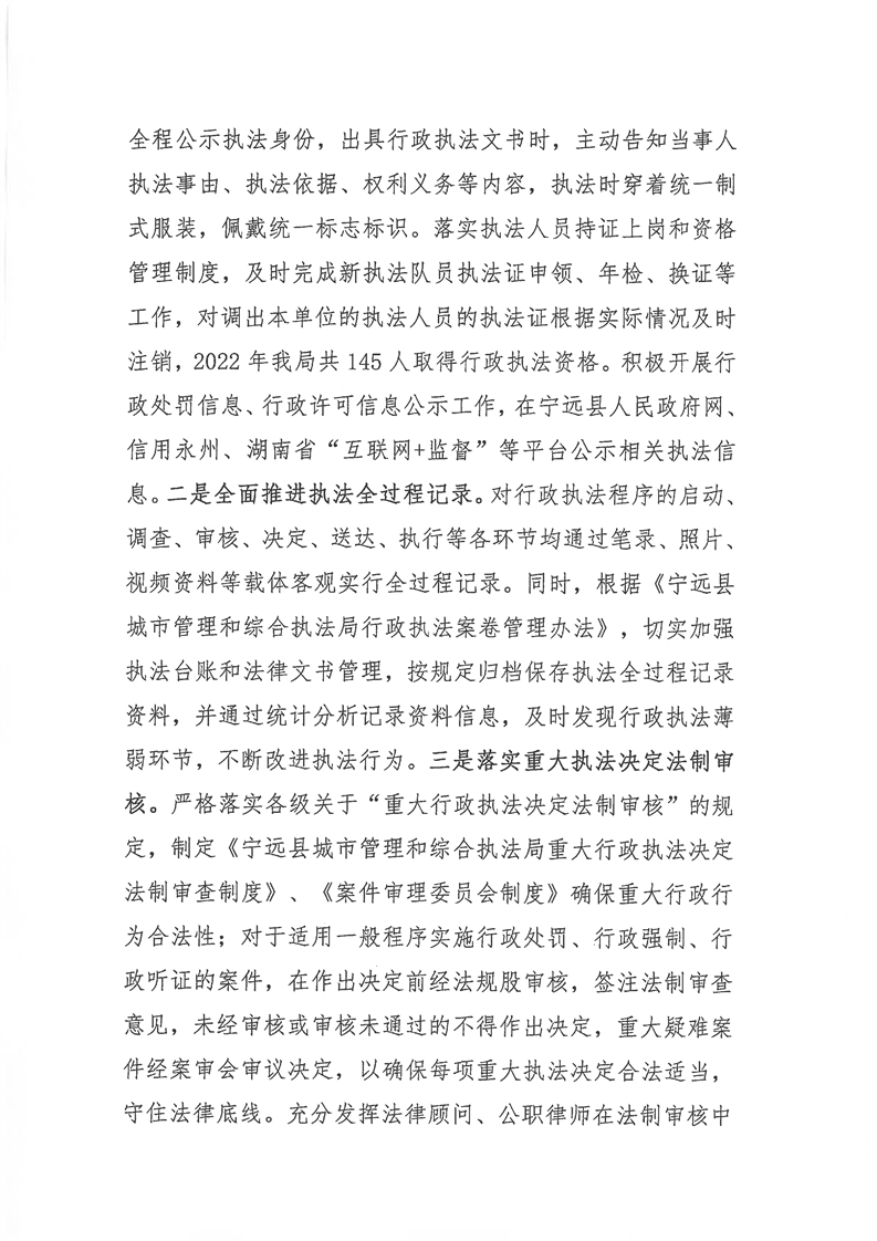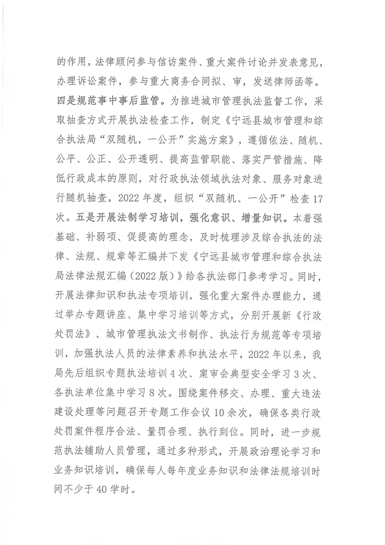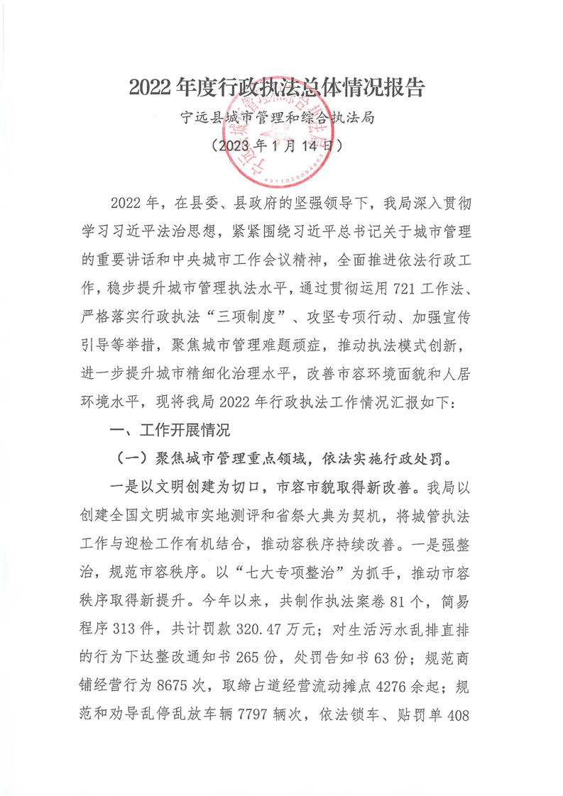 宁远县城管局2022年行政执法工作报告