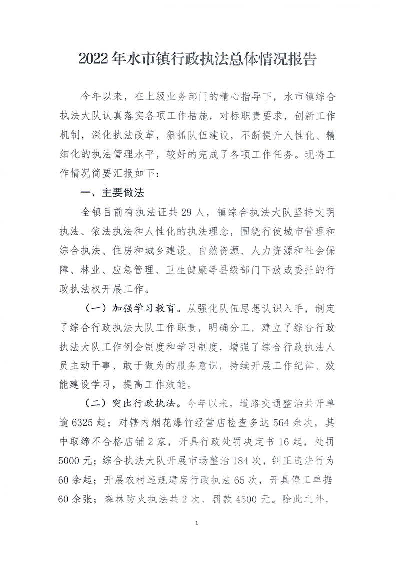 宁远县水市镇2022年行政执法工作报告
