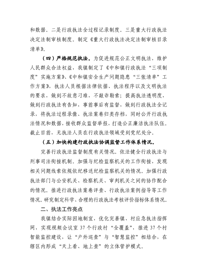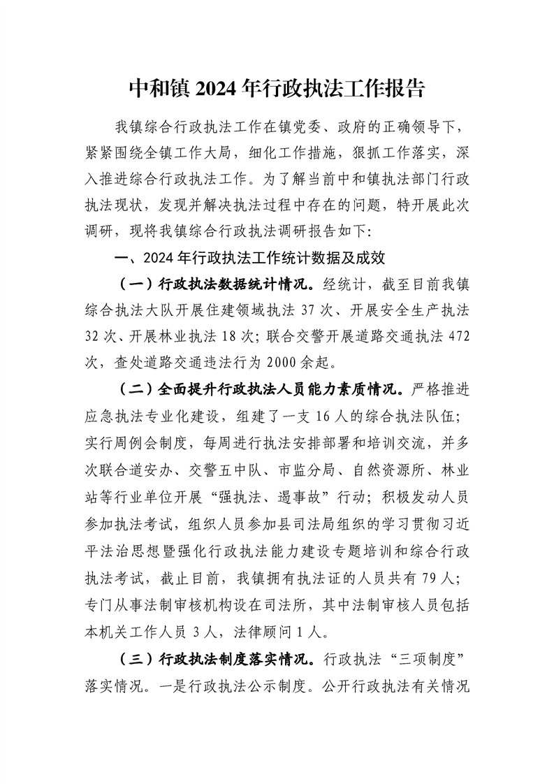 中和镇2024年行政执法工作报告