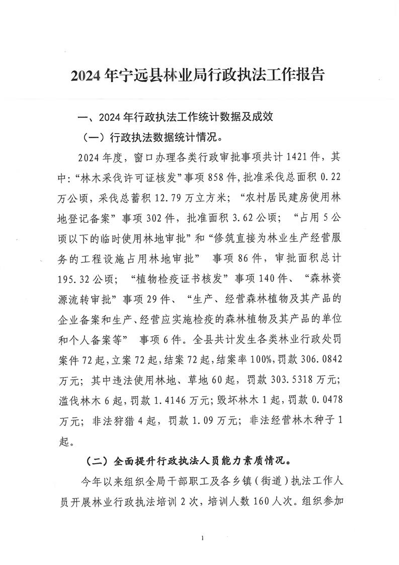 林业局2024年行政执法工作报告