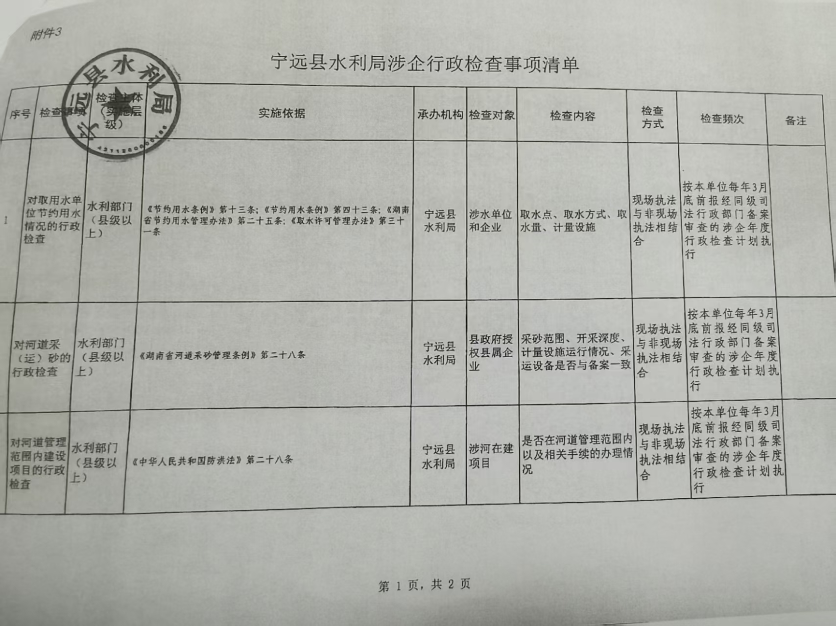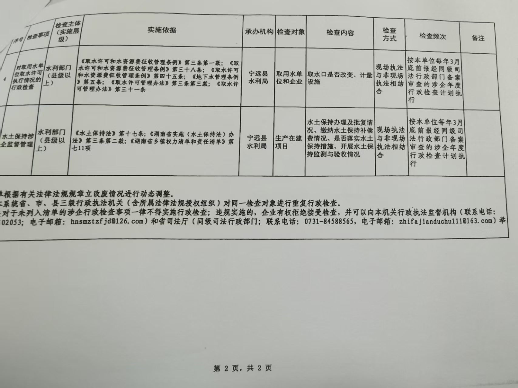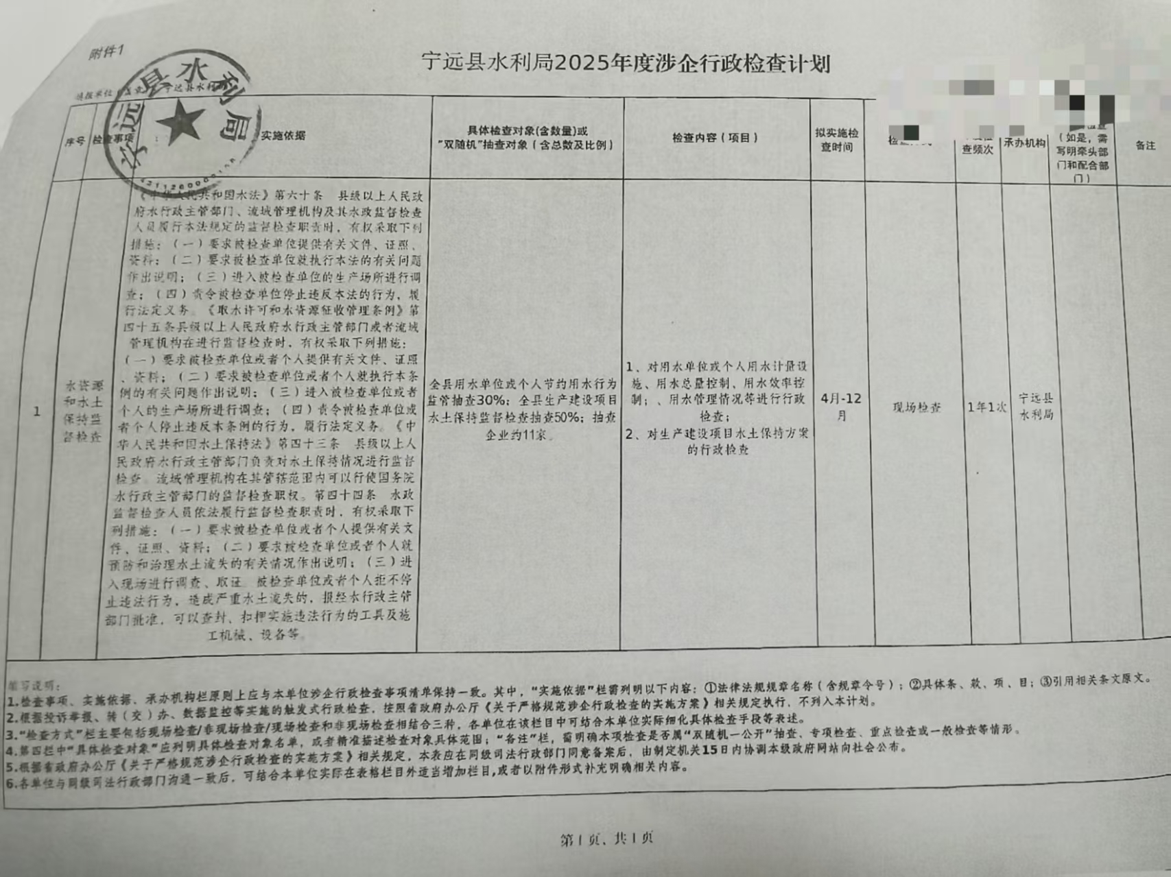 宁远县水利局2025年涉企行政检查计划与事项清单