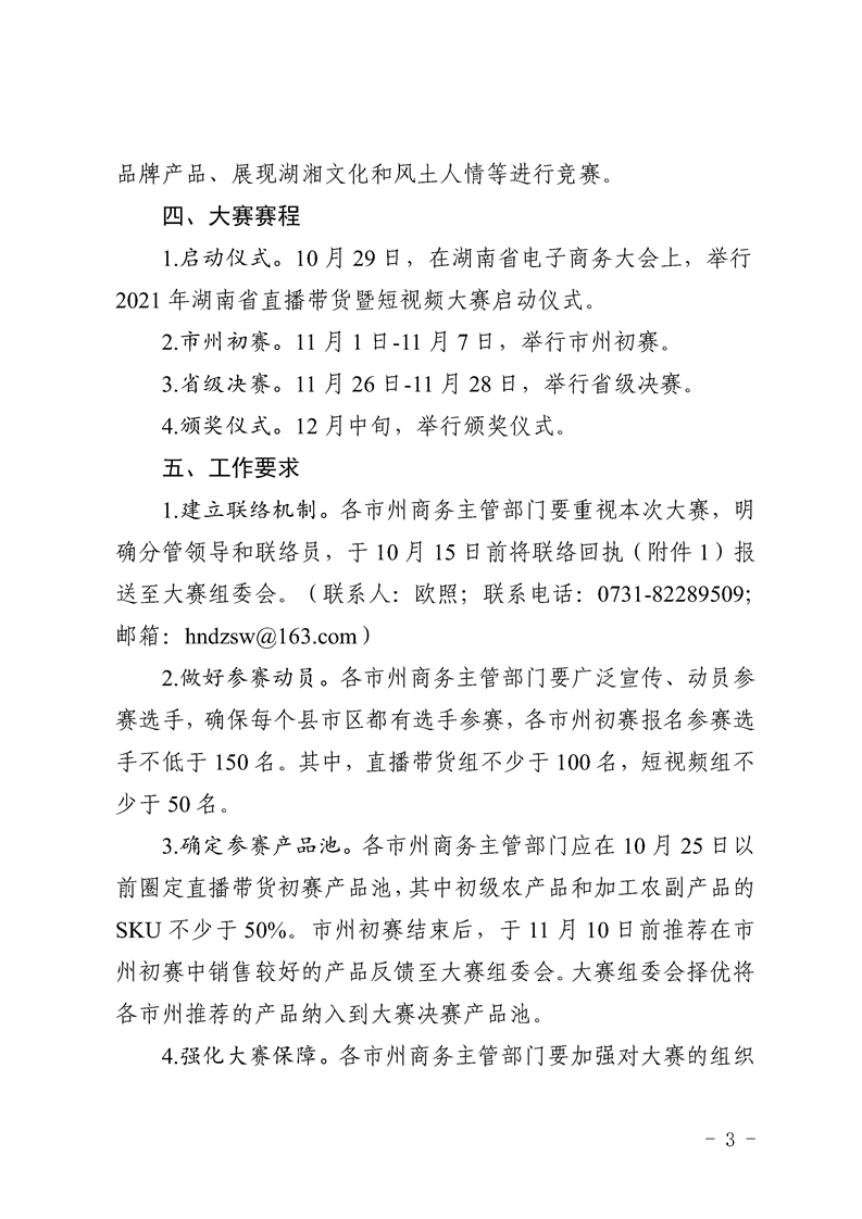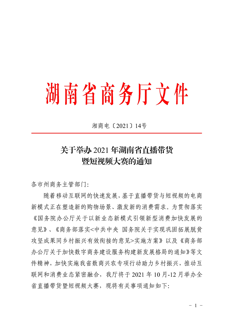 关于举办2021年湖南省直播带货暨短视频大赛的通知