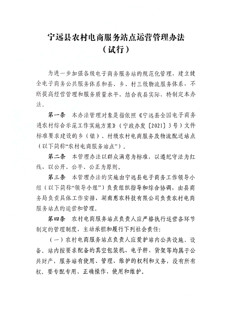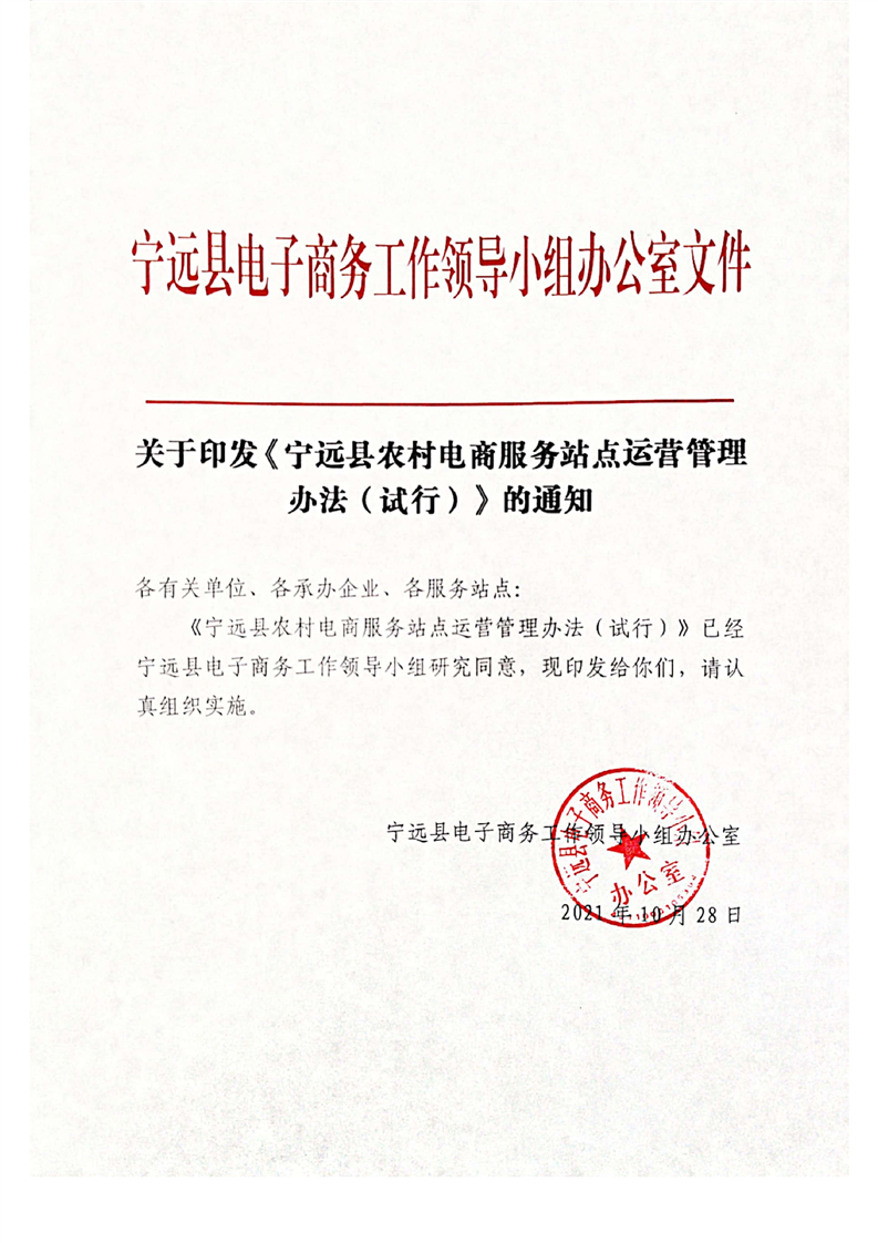关于印发《宁远县农村电商服务站点运营管理办法(试行)》的通知