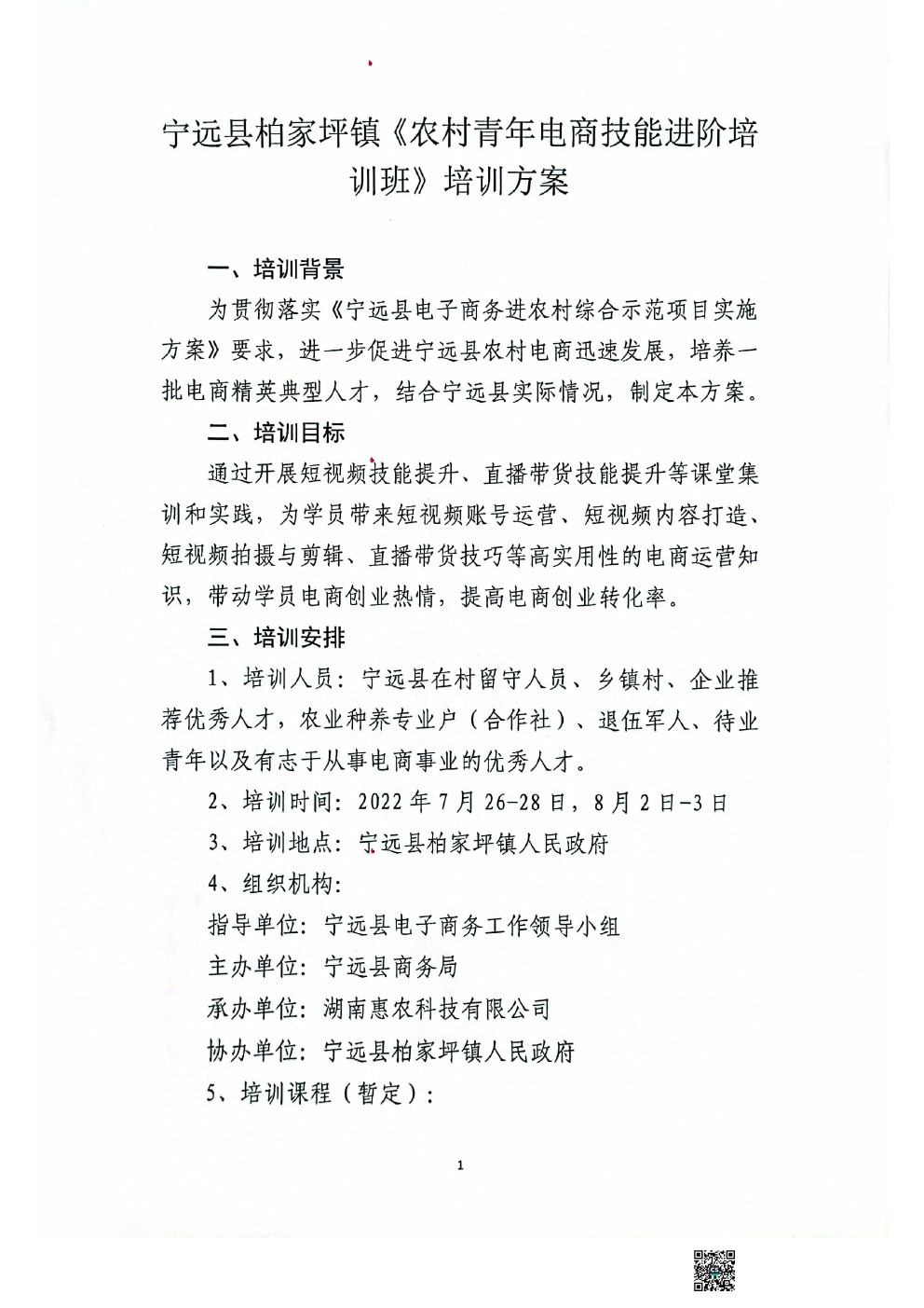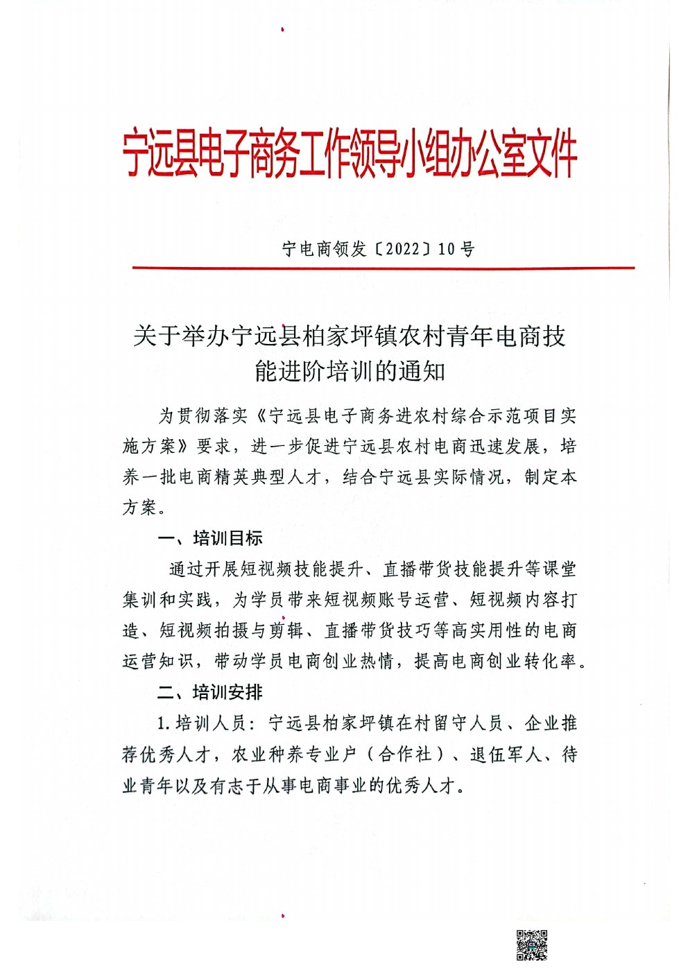 宁远县柏家坪镇《农村青年电商技能进阶培训班》培训方案