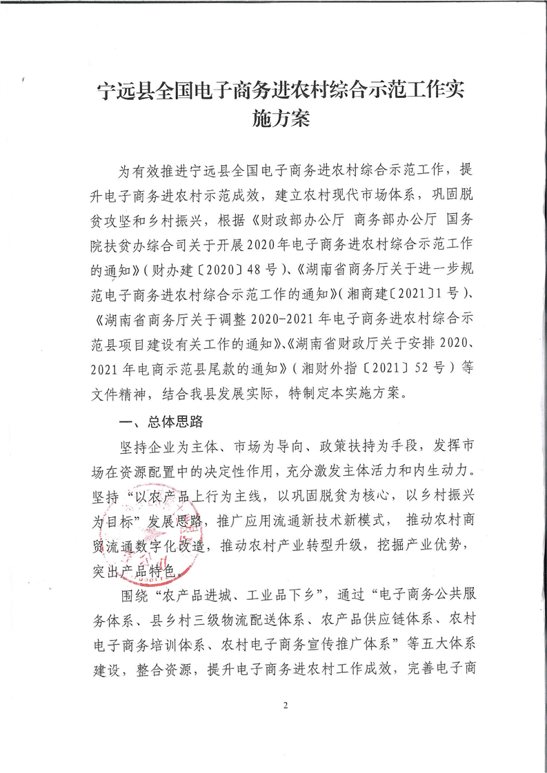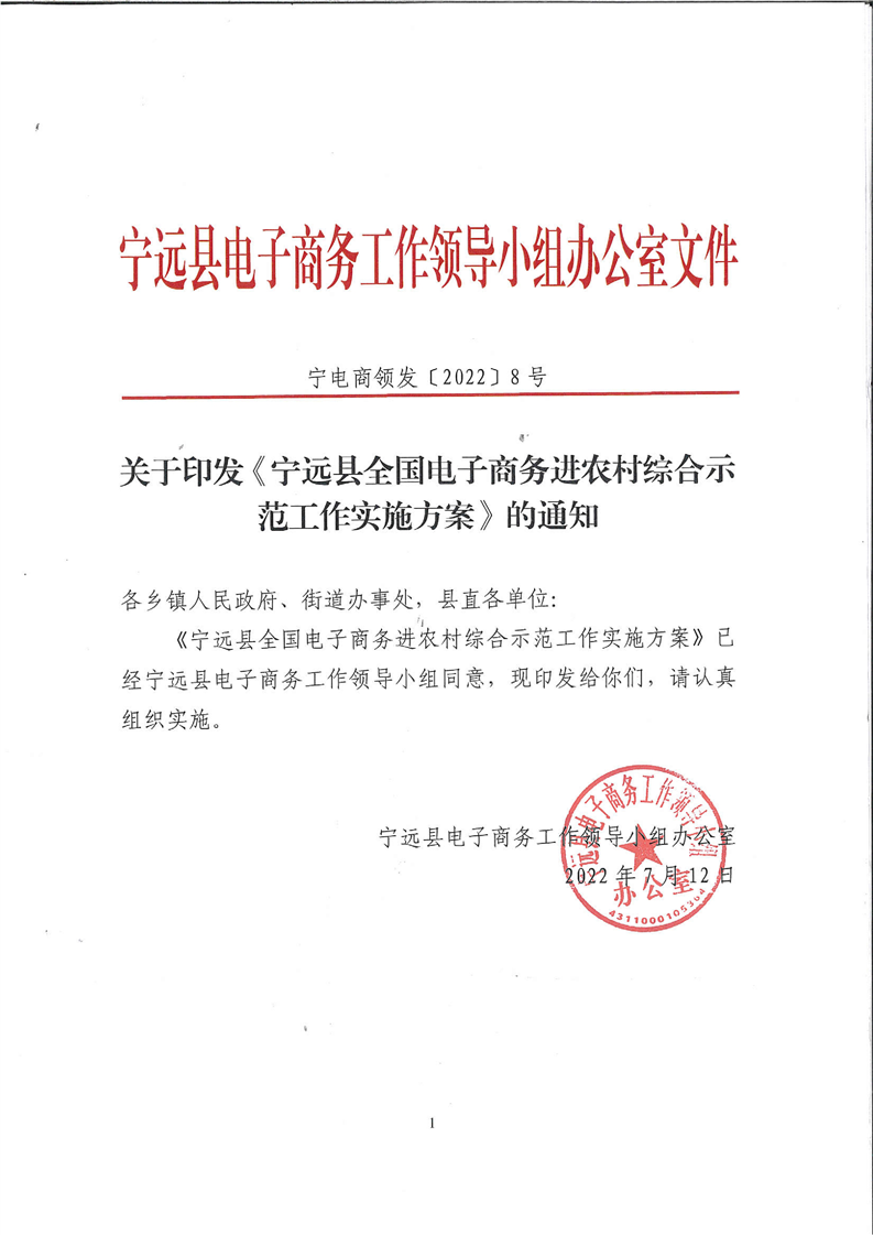 关于印发《宁远县全国电子商务进农村综合示范工作实施方案》的通知