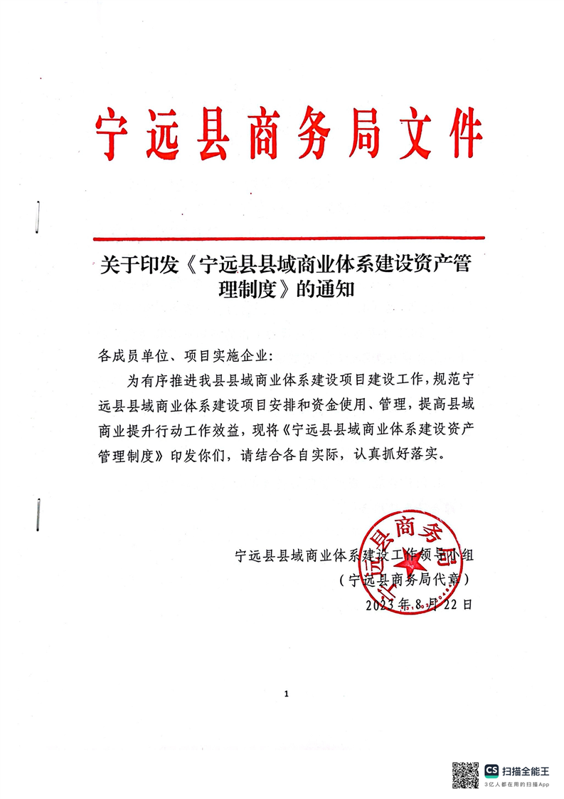宁远县县域商业体系建设资产管理制度