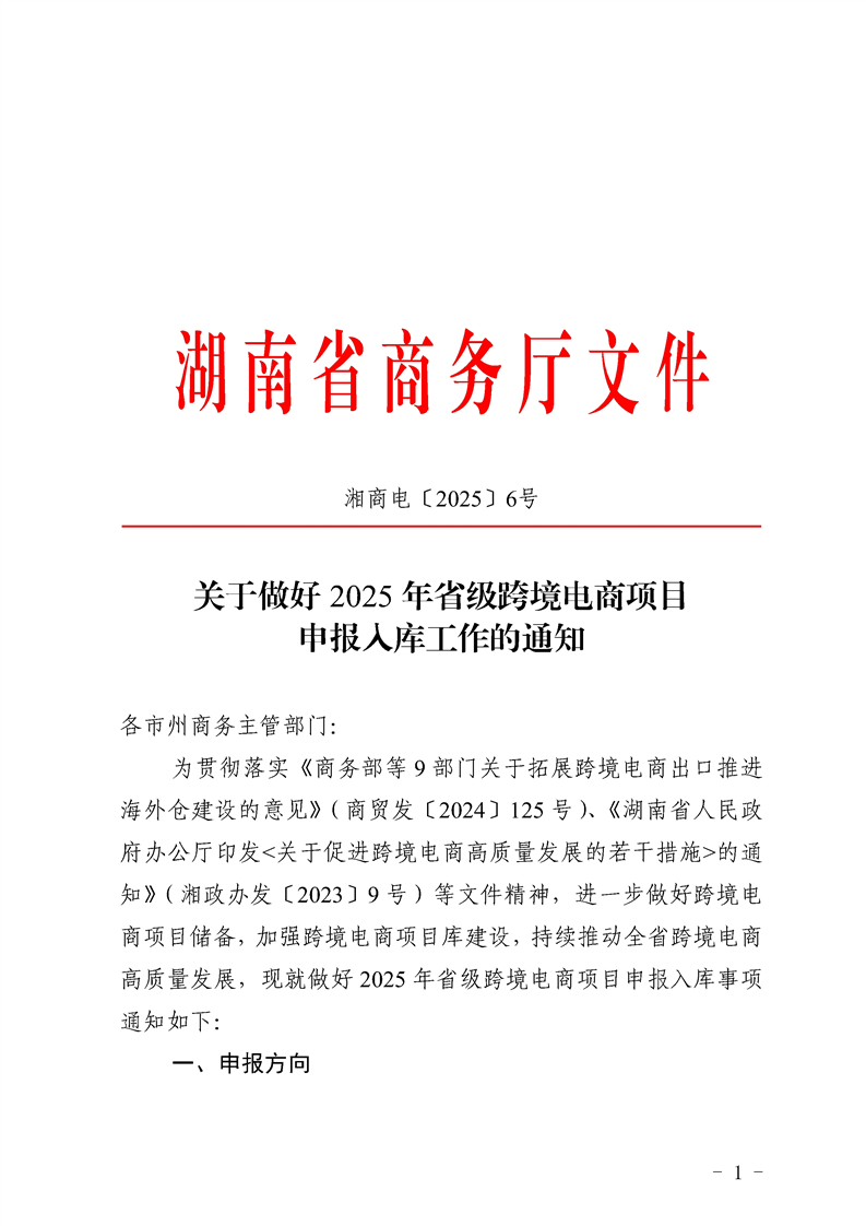 关于做好2025年省级跨境电商项目申报入库工作的通知