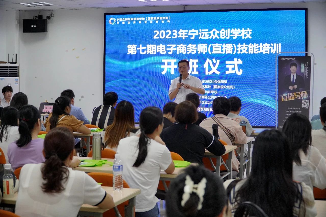 9月8日上午,宁远2023年第七期电子商务师(直播)技能培训在宁远创业孵化基地(国家级众创空间)开班。