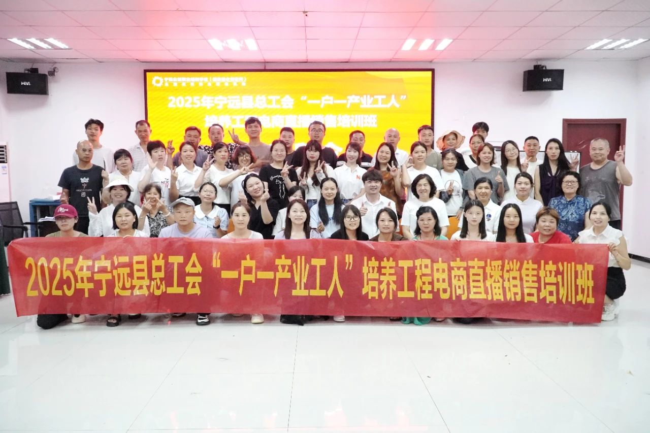 6月29日,2025年宁远县总工会"一户一产业工人"培养工程电商直播销售培训班在宁远创业孵化基地(众创空间)圆满结业。