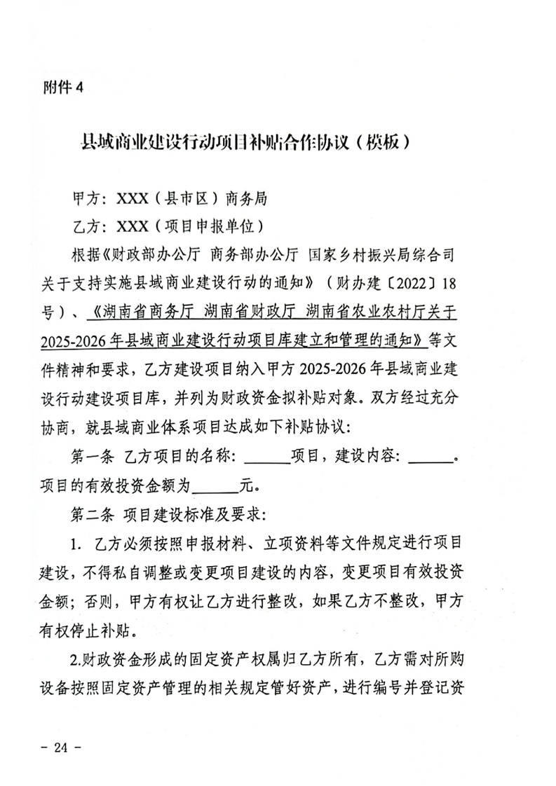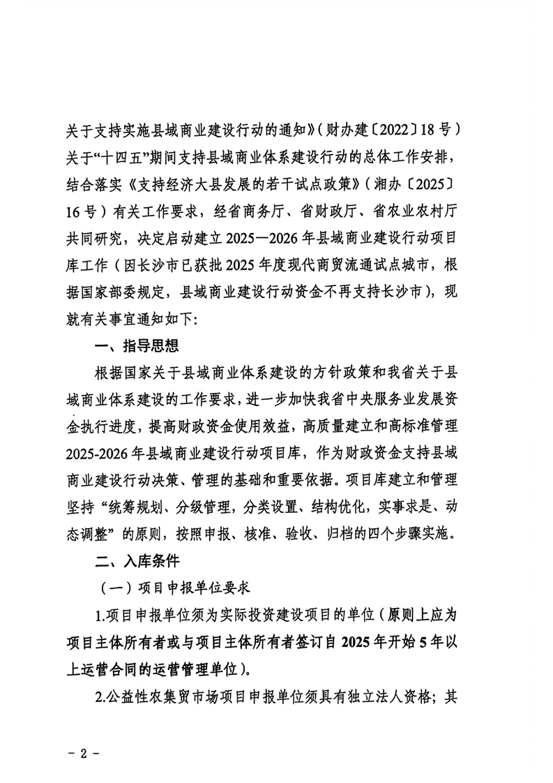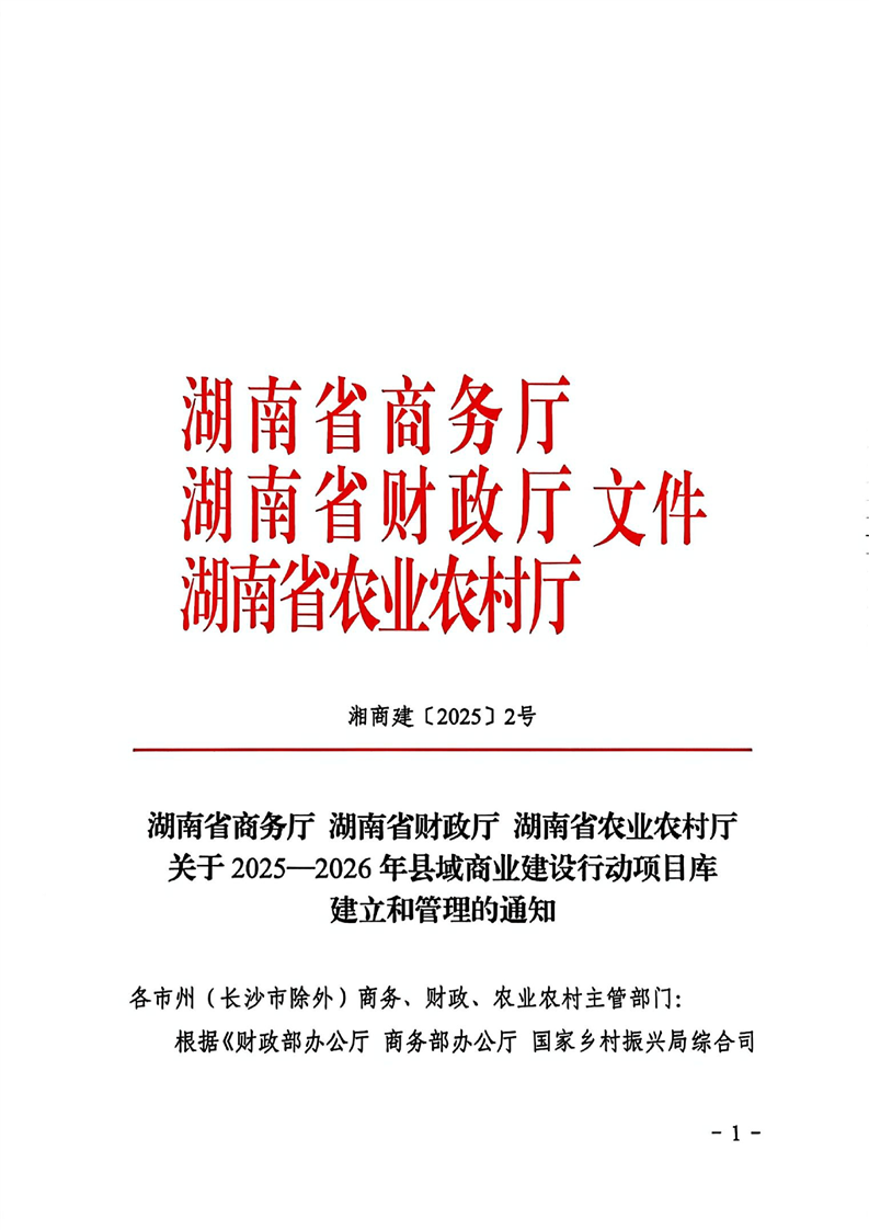 湖南省商务厅、财政厅、农业农村厅关于2025-2026年县域商业建设行动项目库建立和管理的通知