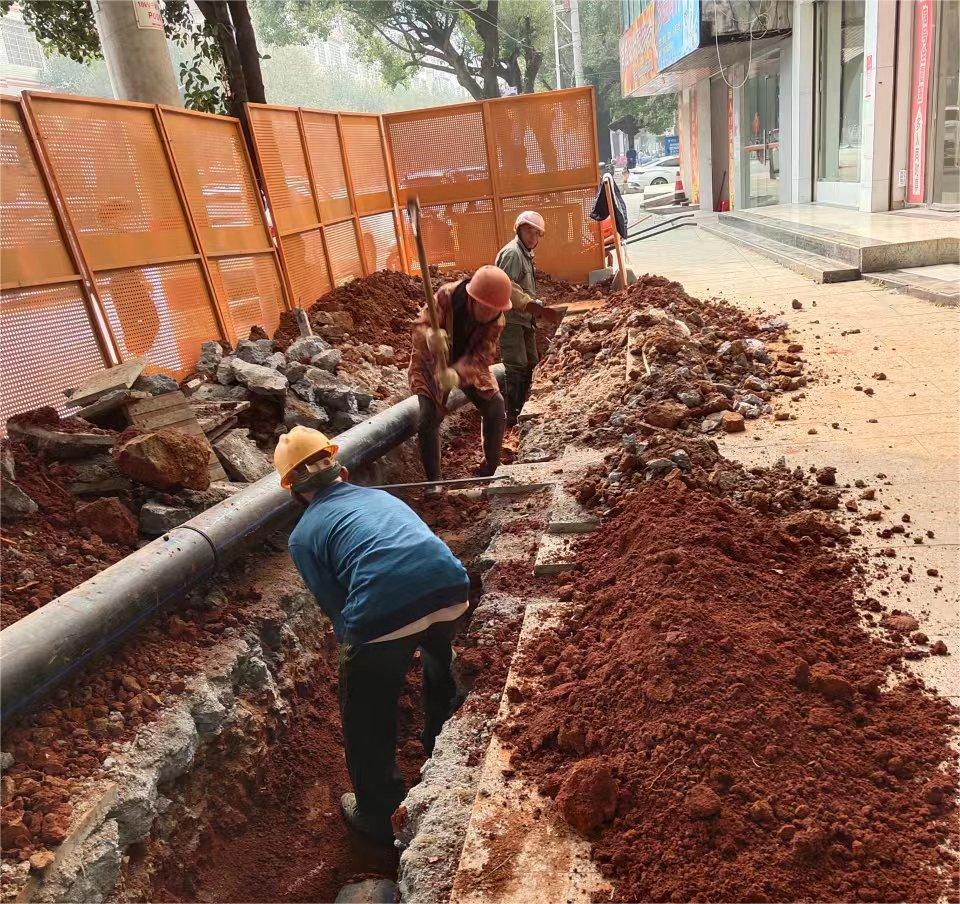 在施工现场,施工人员各司其职,紧张有序地进行基础开挖、管道熔接、埋管敷设等作业,供水管网改造工程正按时间节点稳步推进。该工程预计本月中旬完工,完工后将大大改善以上区域及周边群众用水体验,让老百姓过个安心年。