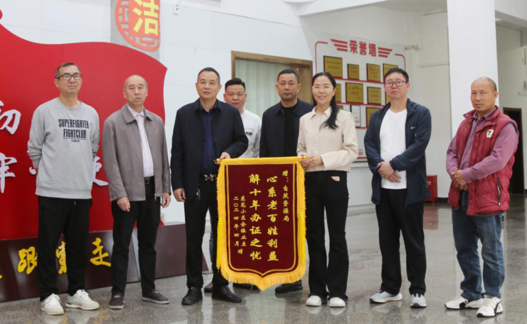 “心系老百姓利益,解十年办证之忧”,近日,拿到不动产权证书的东苑小区业主们,向宁远县自然资源局赠送了感谢的锦旗。