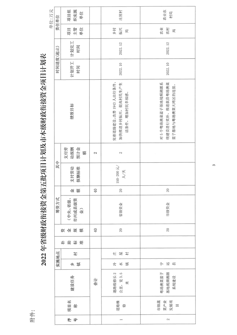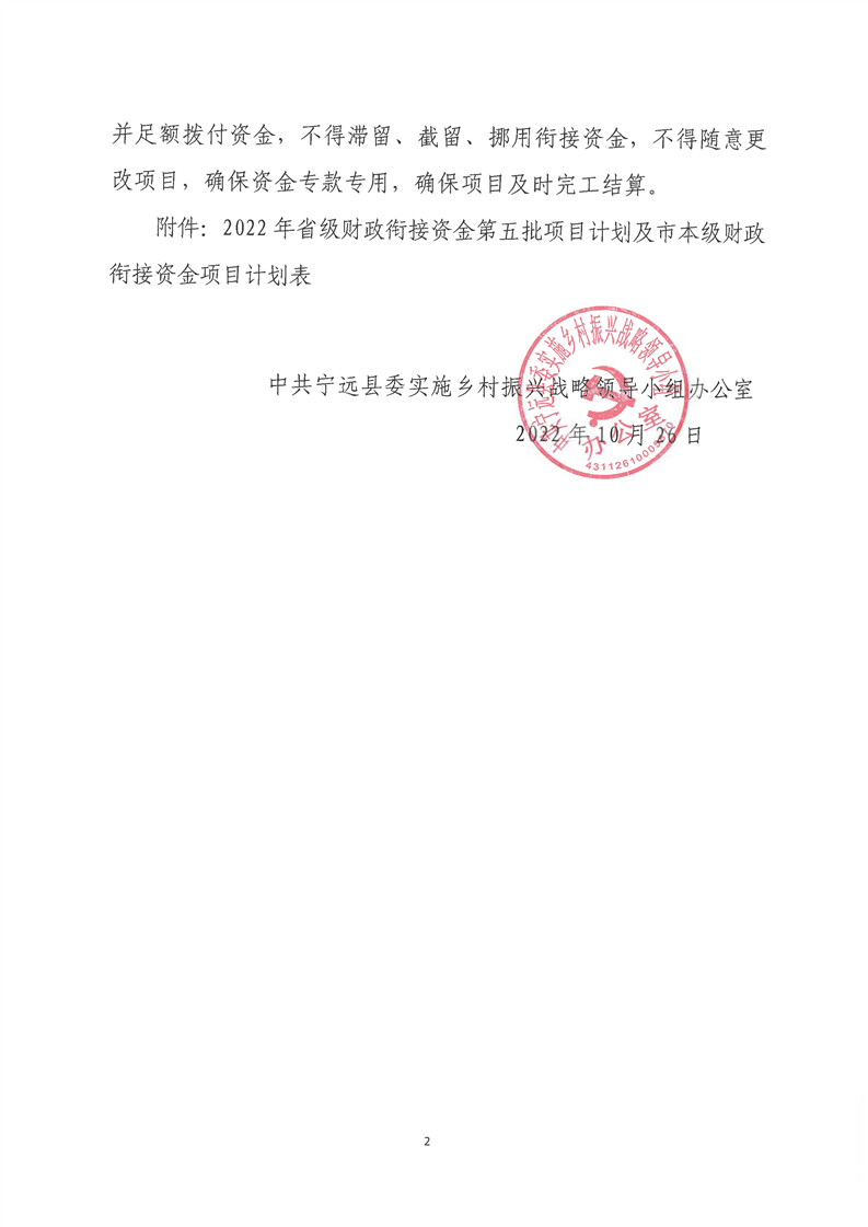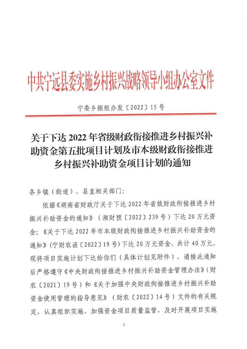 关于下达2022年省级财政衔接推进乡村振兴补助资金第五批项目计划及市本级财政衔接推进乡村振兴补助资金项目计划的通知