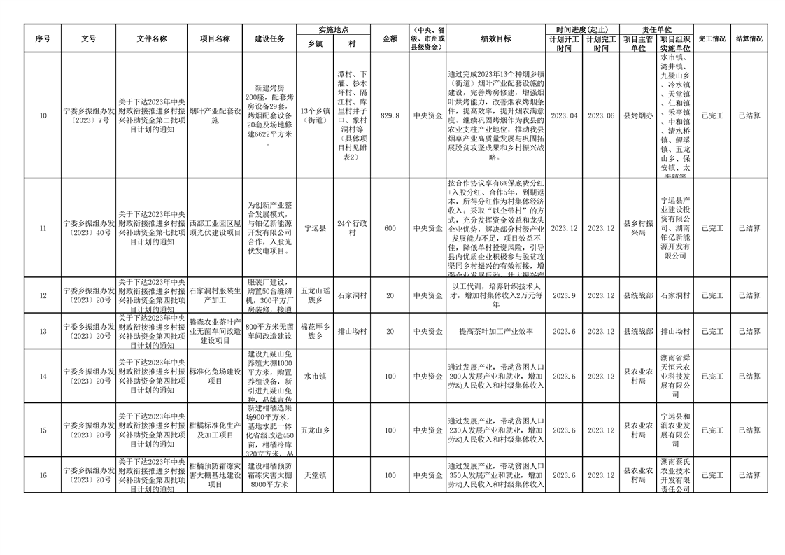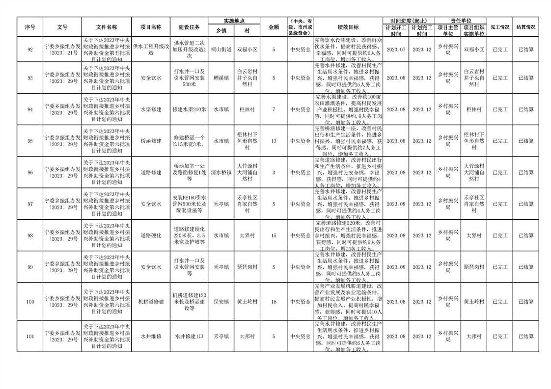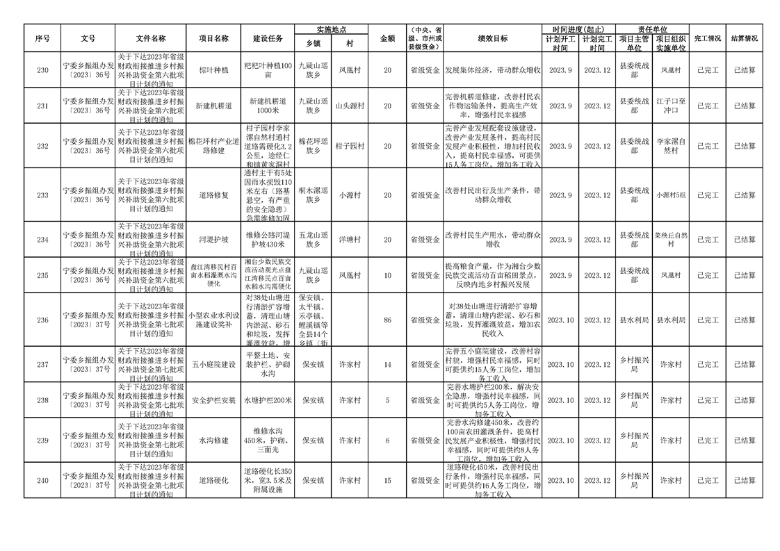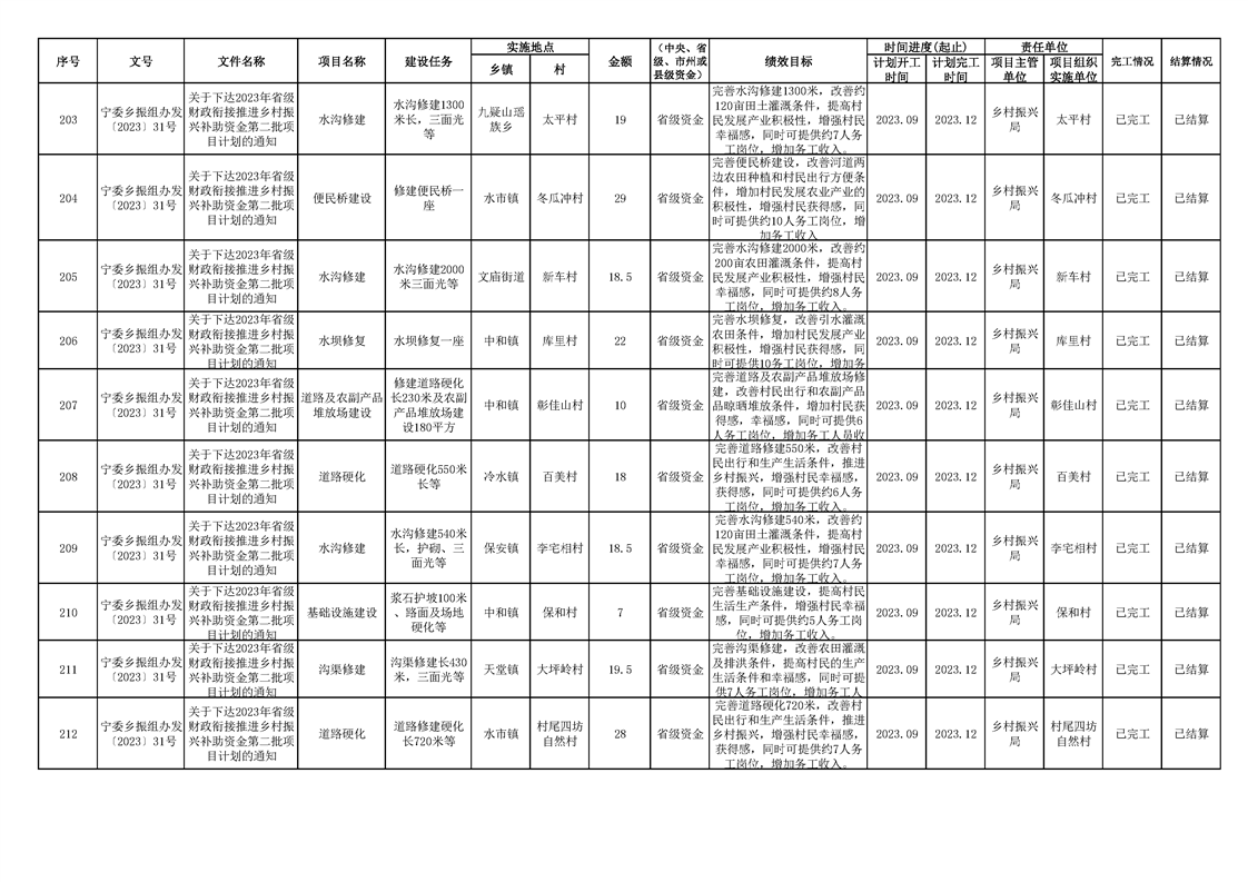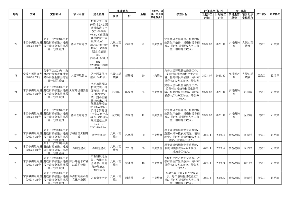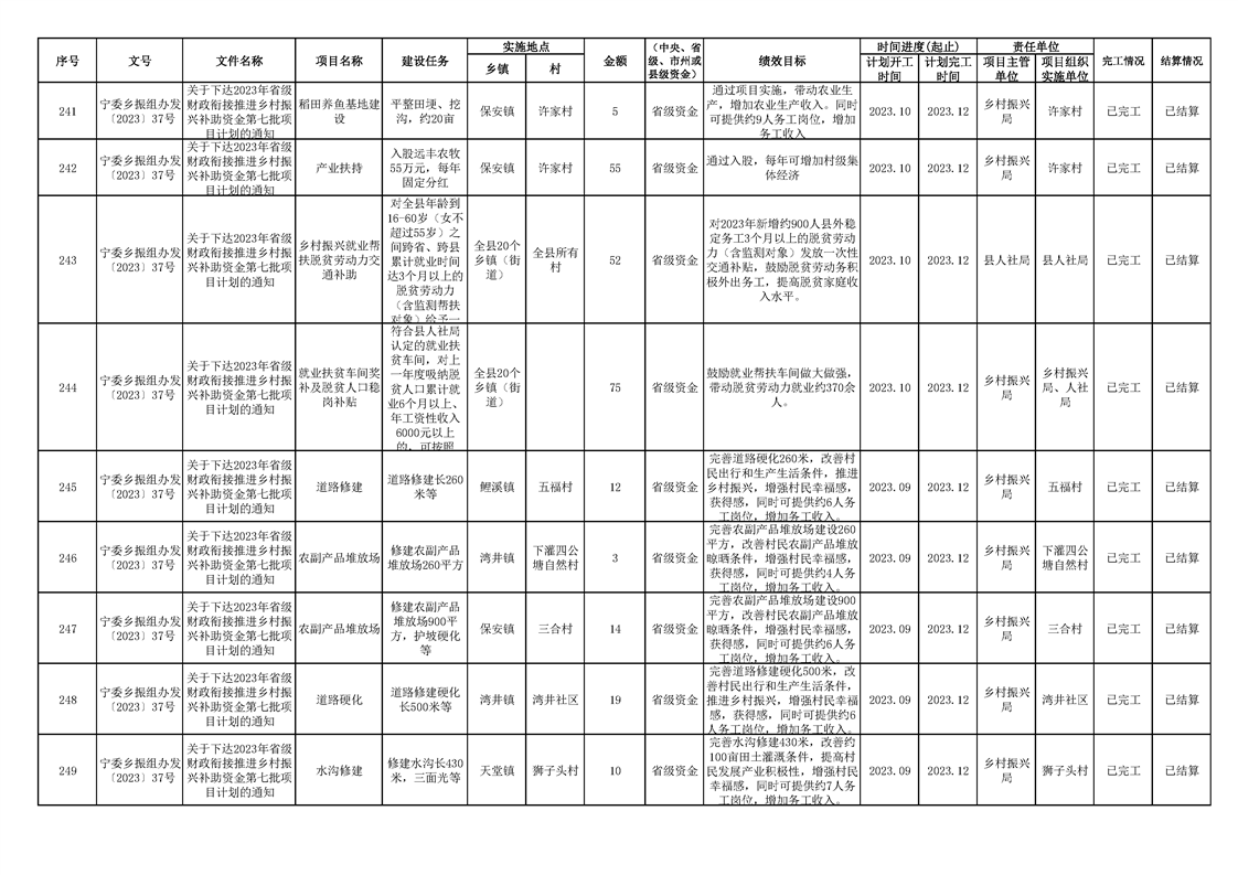 2023年财政衔接乡村振兴补助资金项目计划完成情况