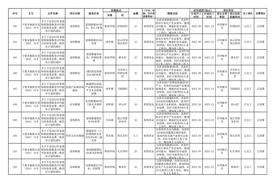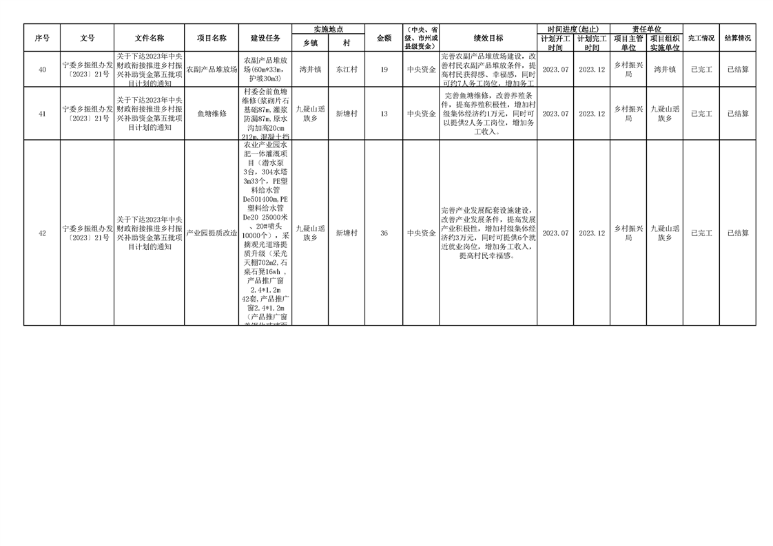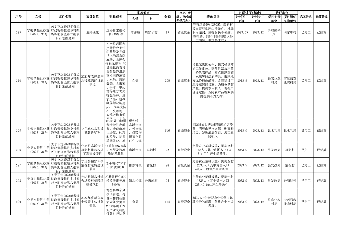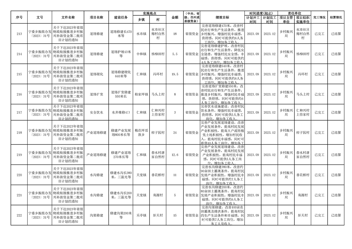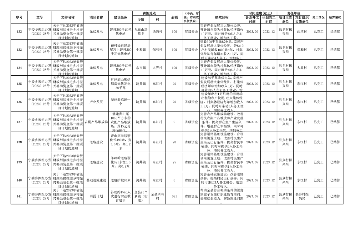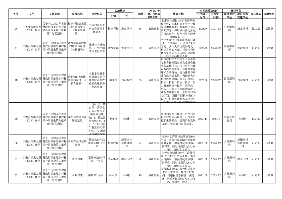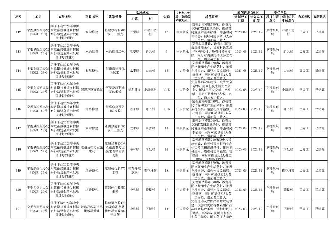 2023年财政衔接乡村振兴补助资金项目计划完成情况