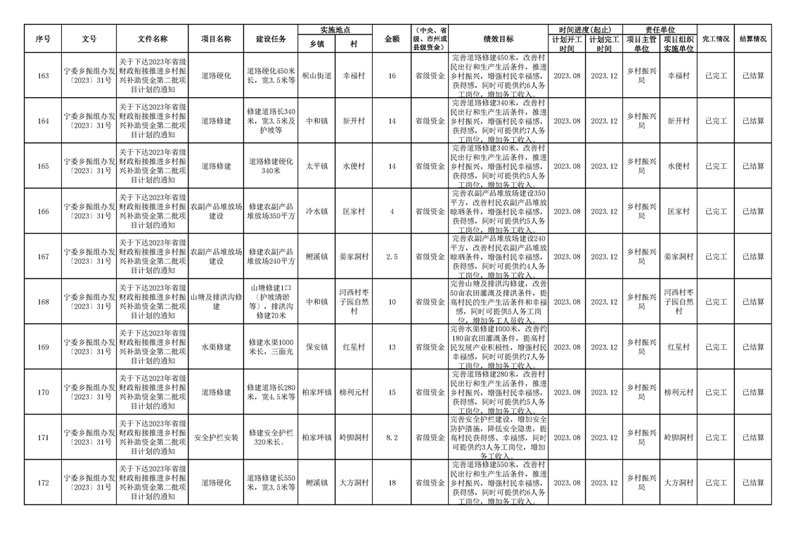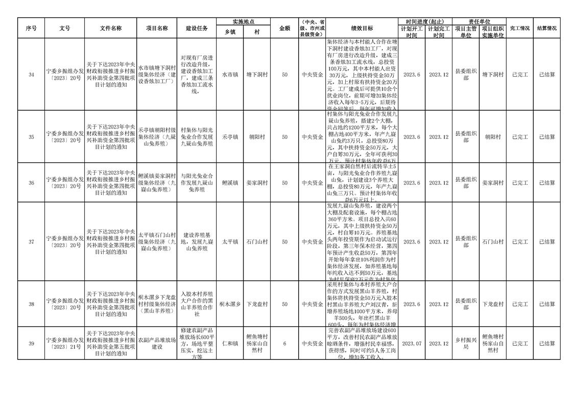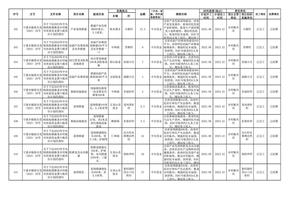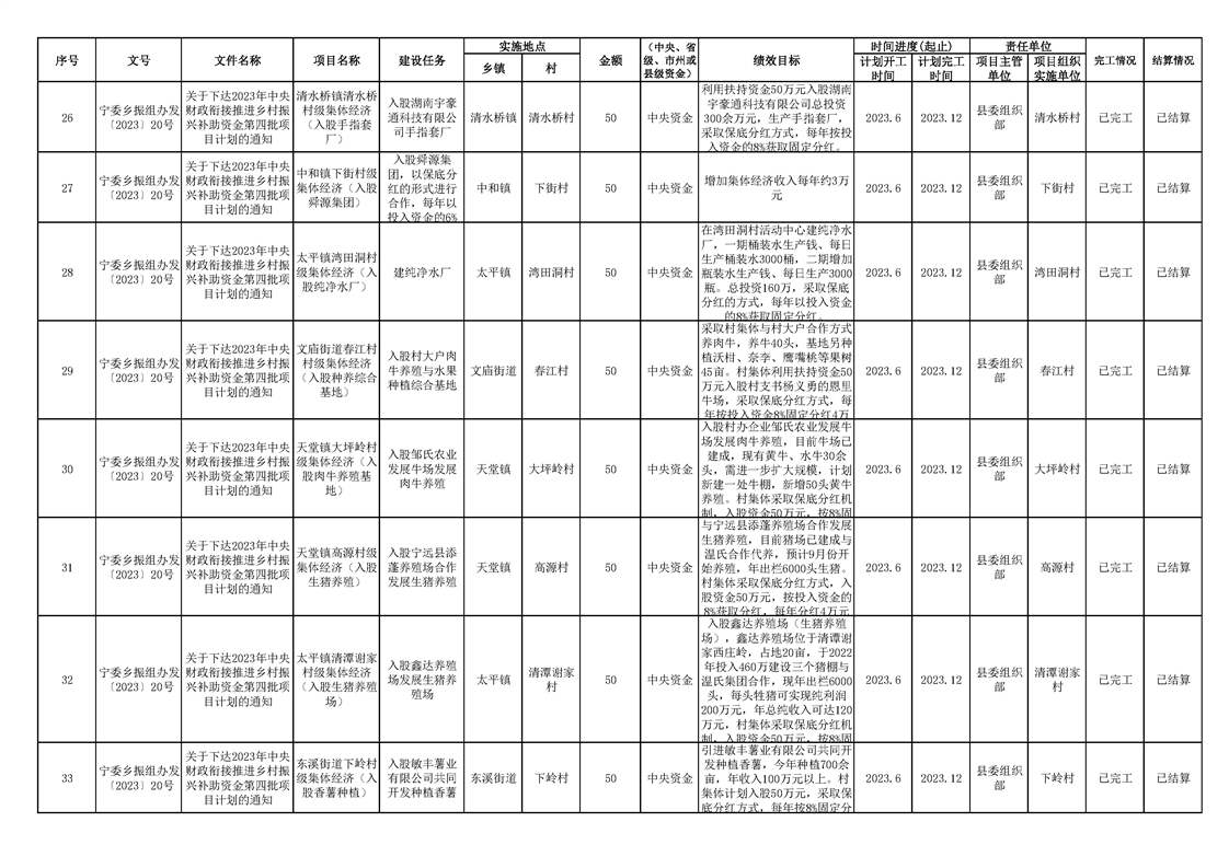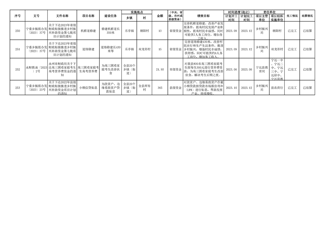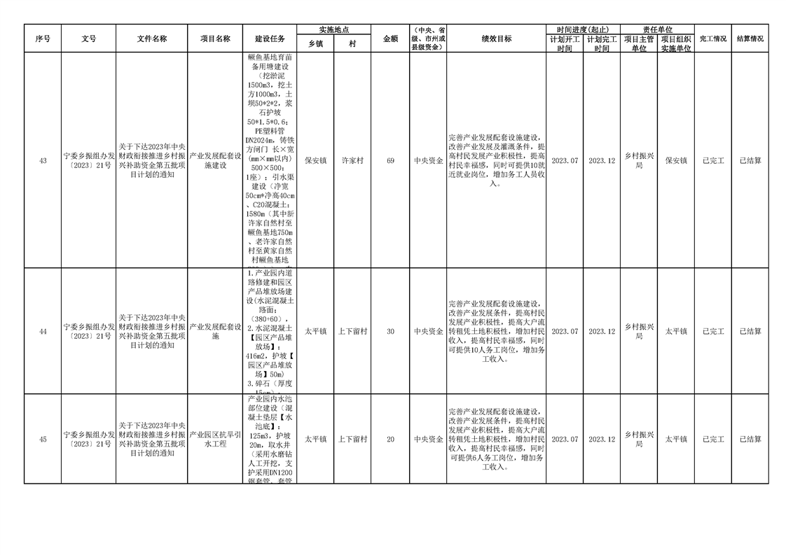 2023年财政衔接乡村振兴补助资金项目计划完成情况