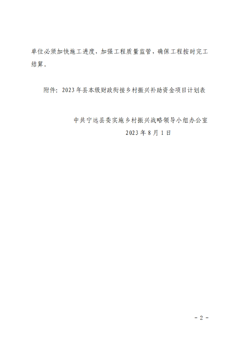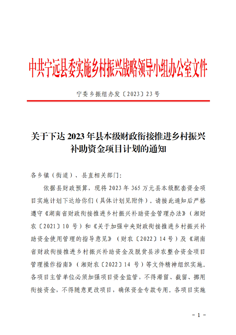 关于下达2023年县本级财政衔接推进乡村振兴补助资金项目计划的通知