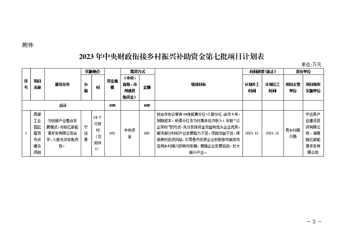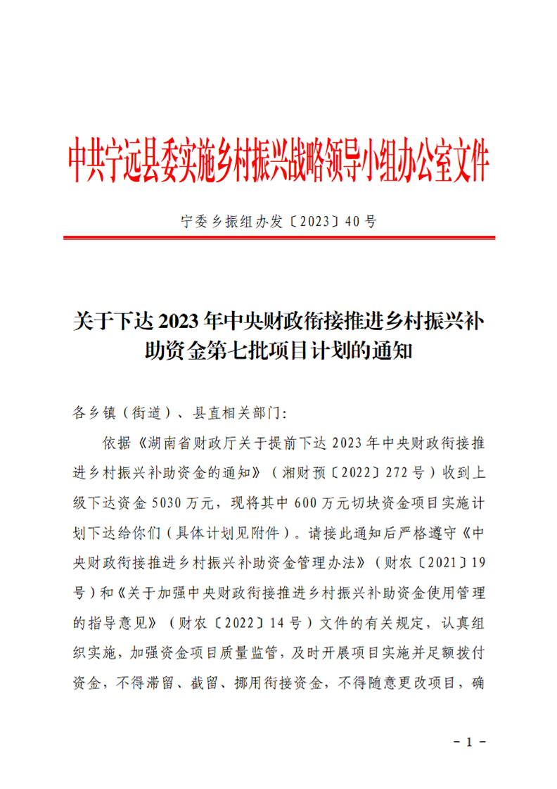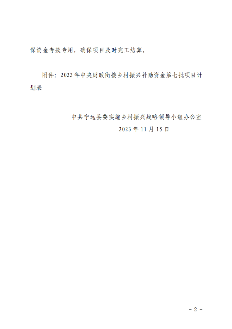 关于下达2023年中央财政衔接推进乡村振兴补助资金第七批项目计划的通知
