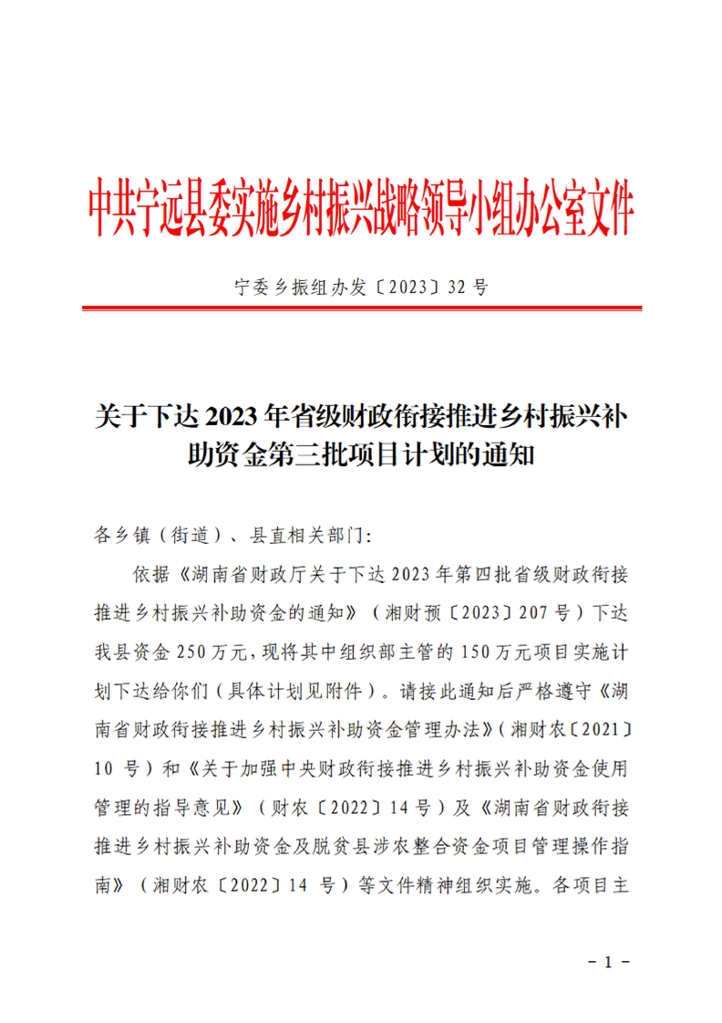 关于下达2023年省级财政衔接推进乡村振兴补助资金第三批项目计划的通知