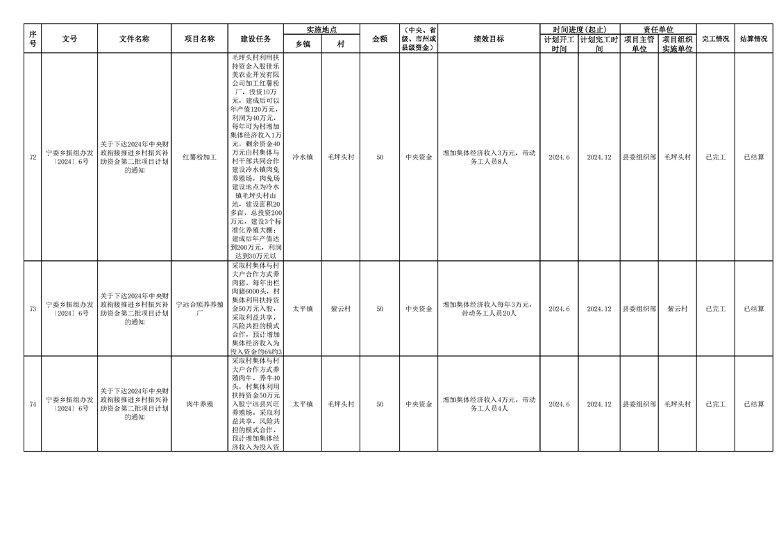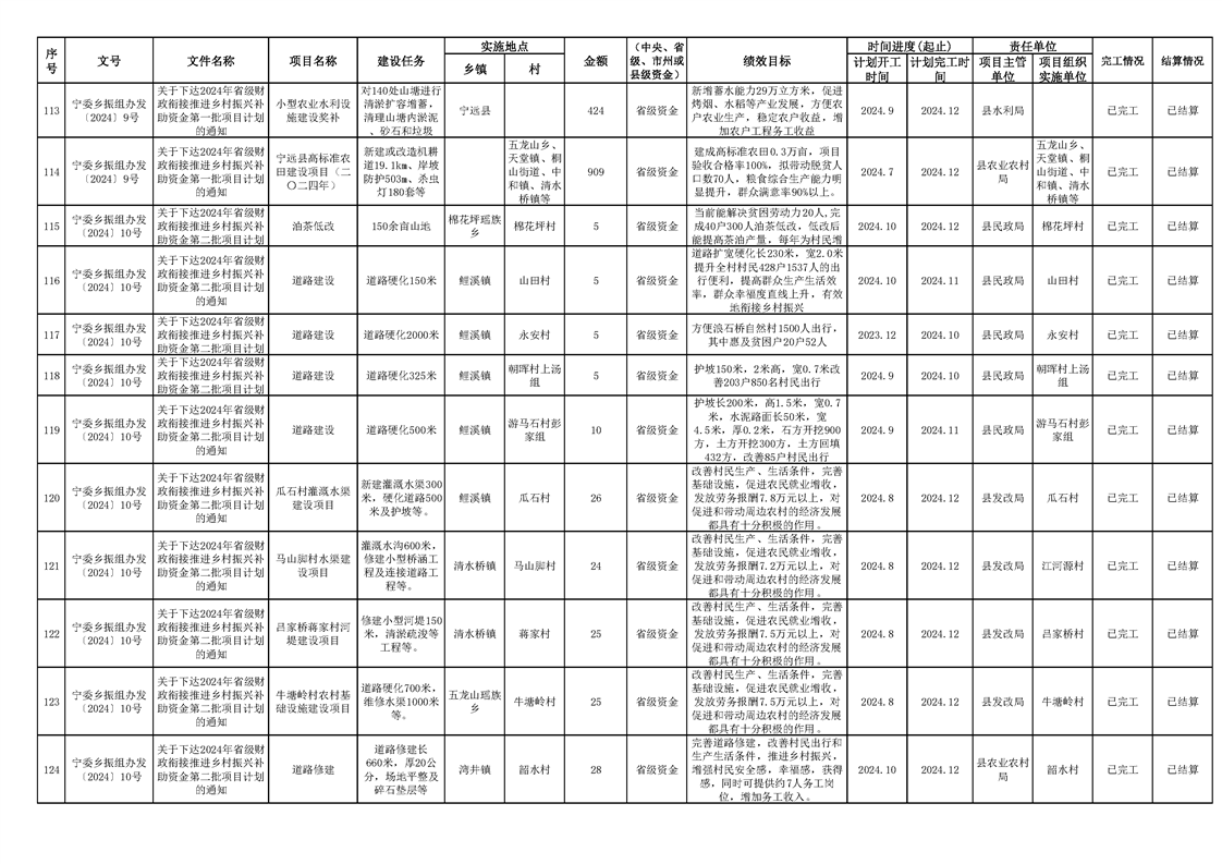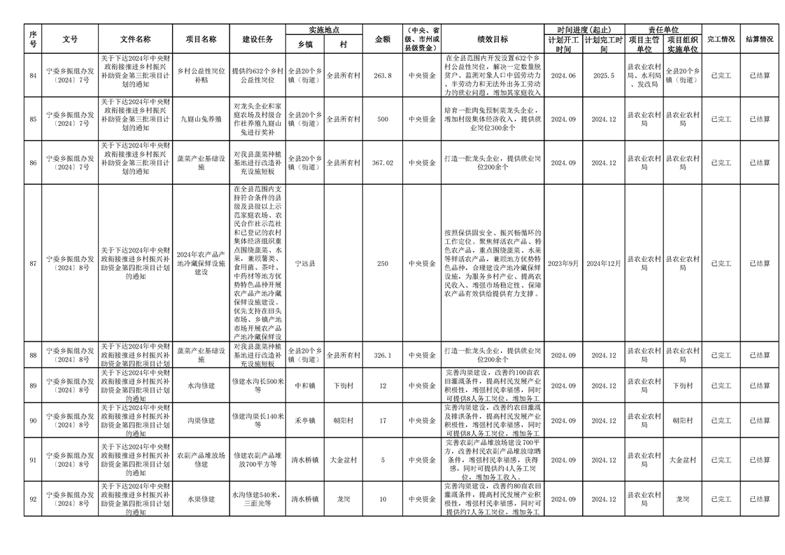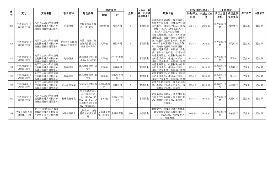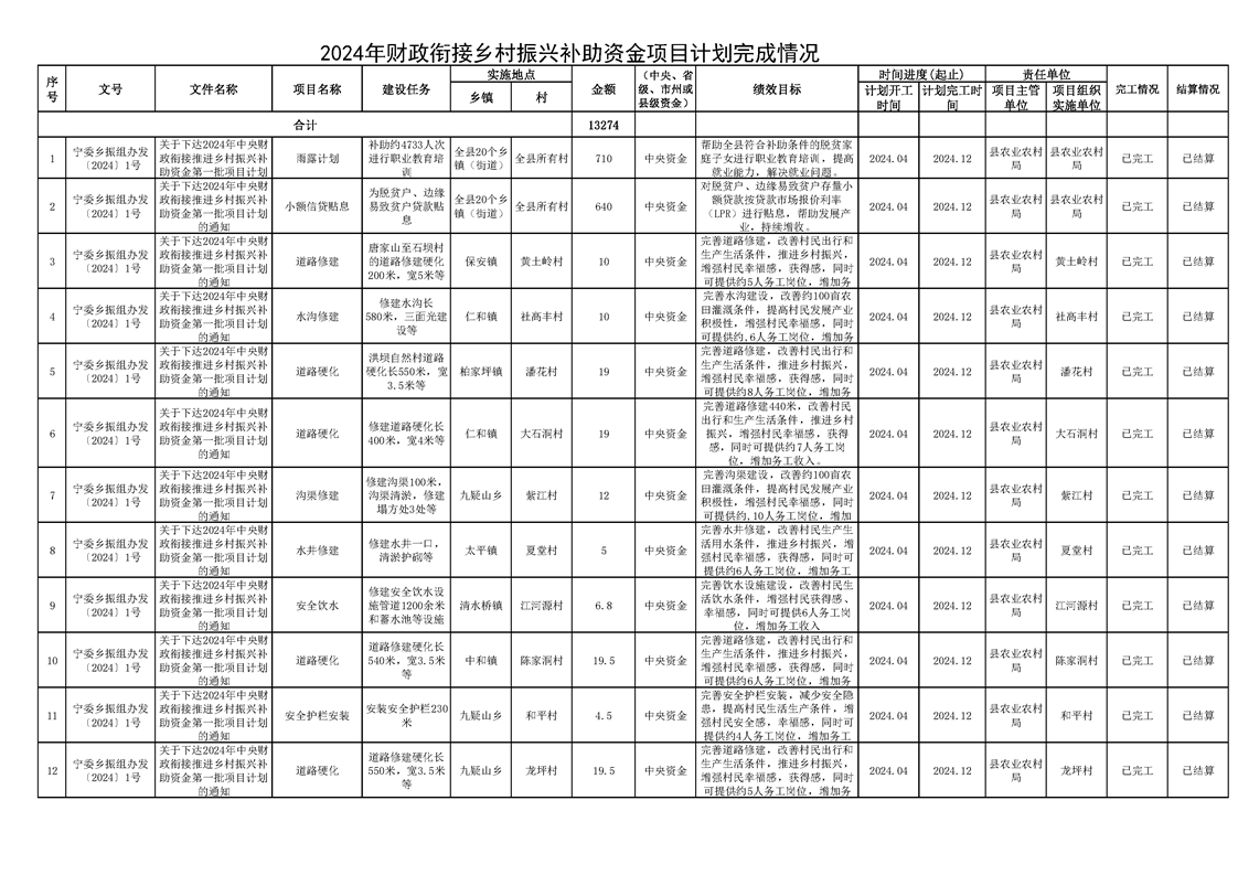 2024年财政衔接乡村振兴补助资金项目计划完成情况