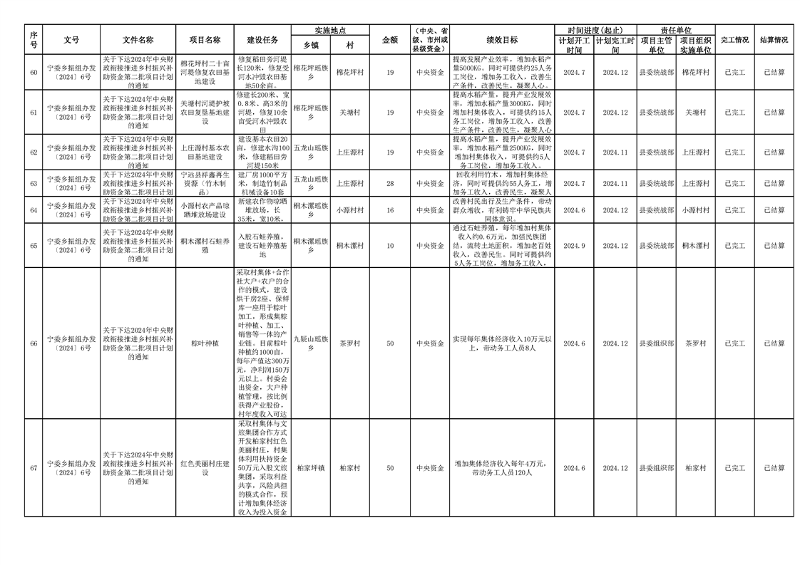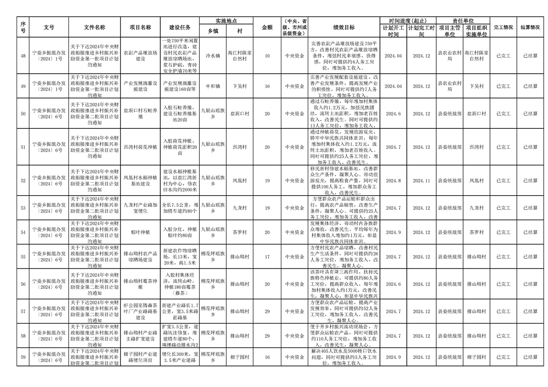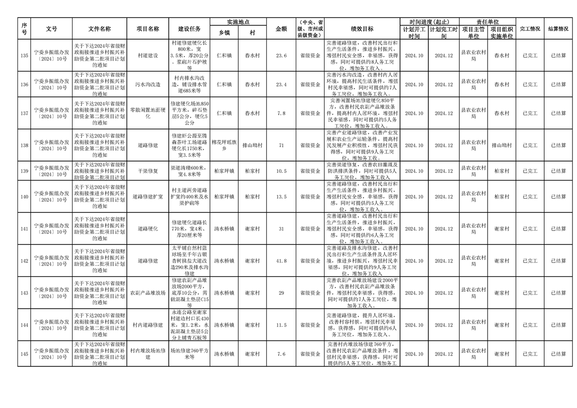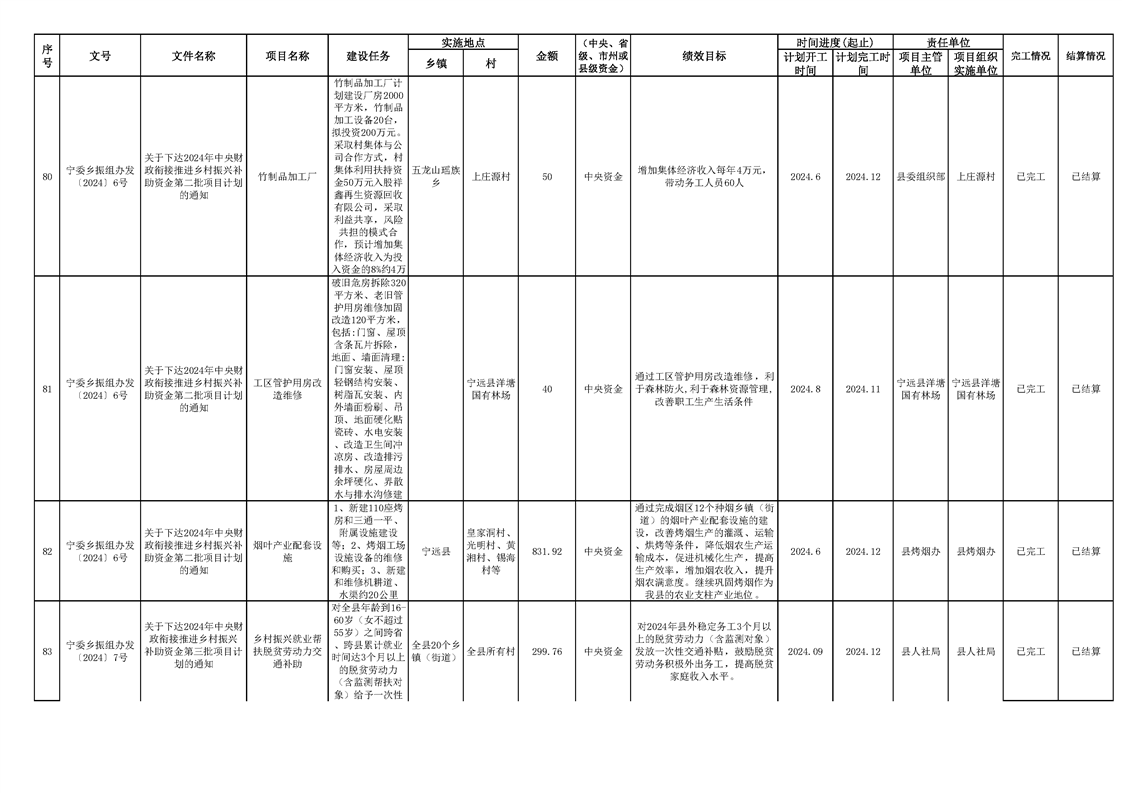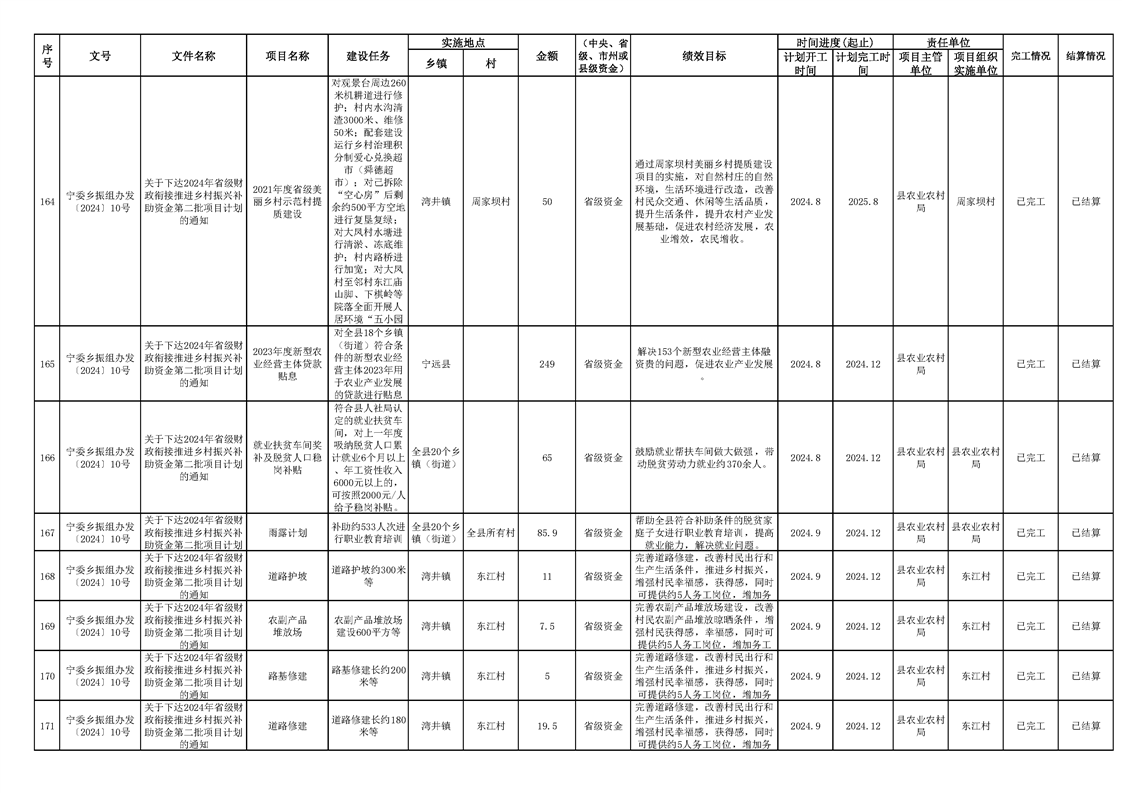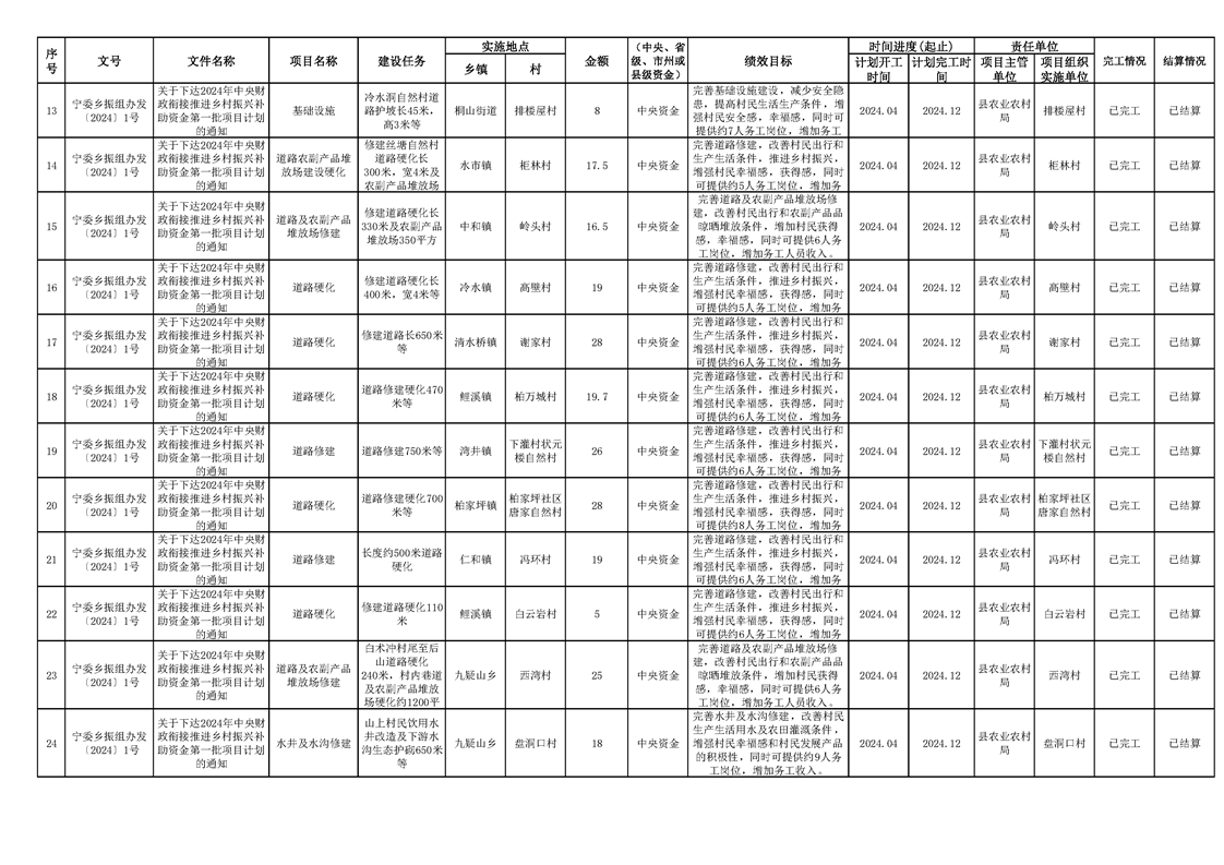 2024年财政衔接乡村振兴补助资金项目计划完成情况