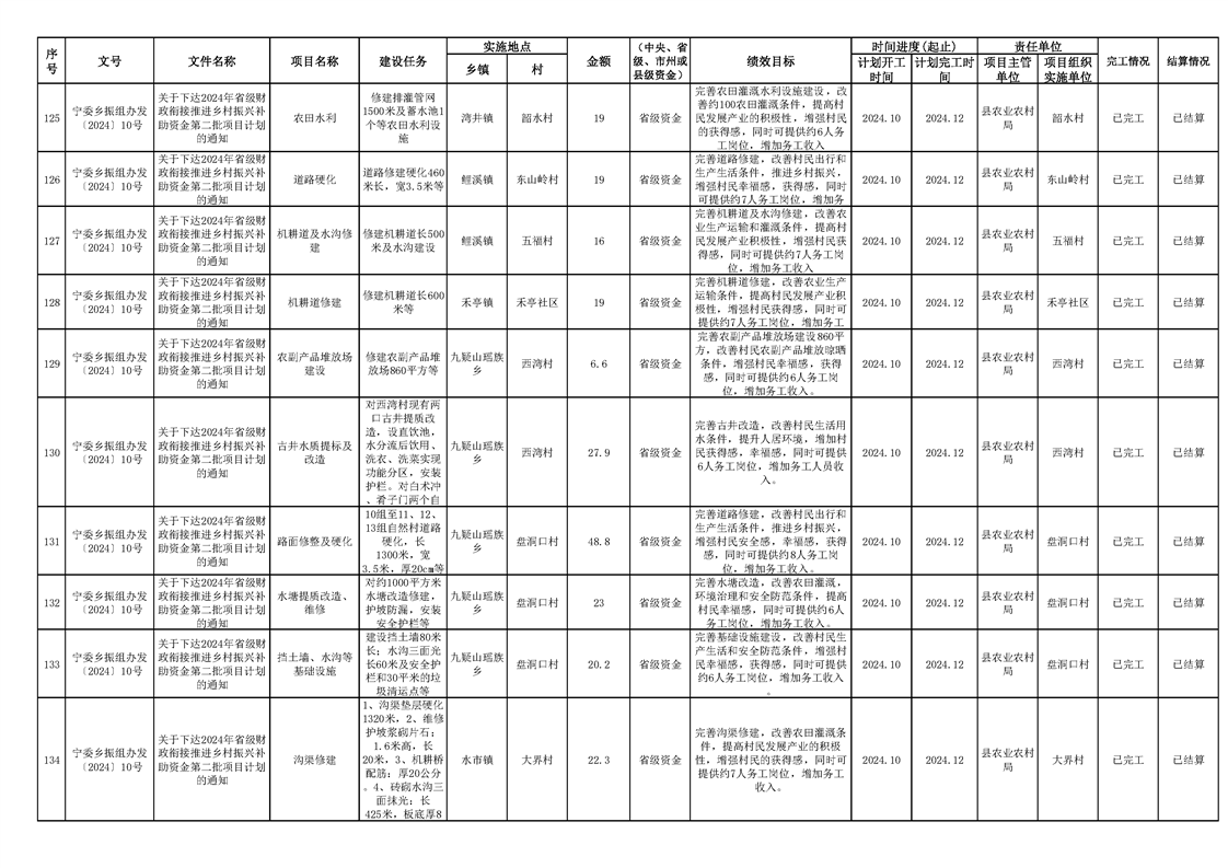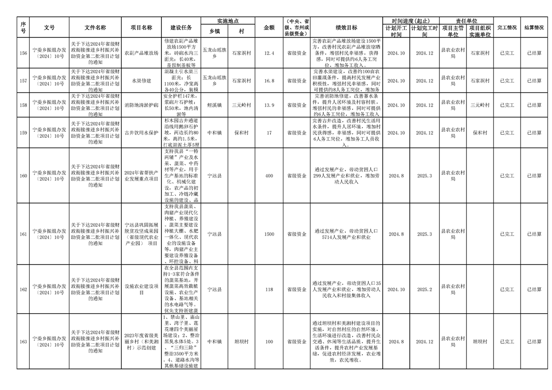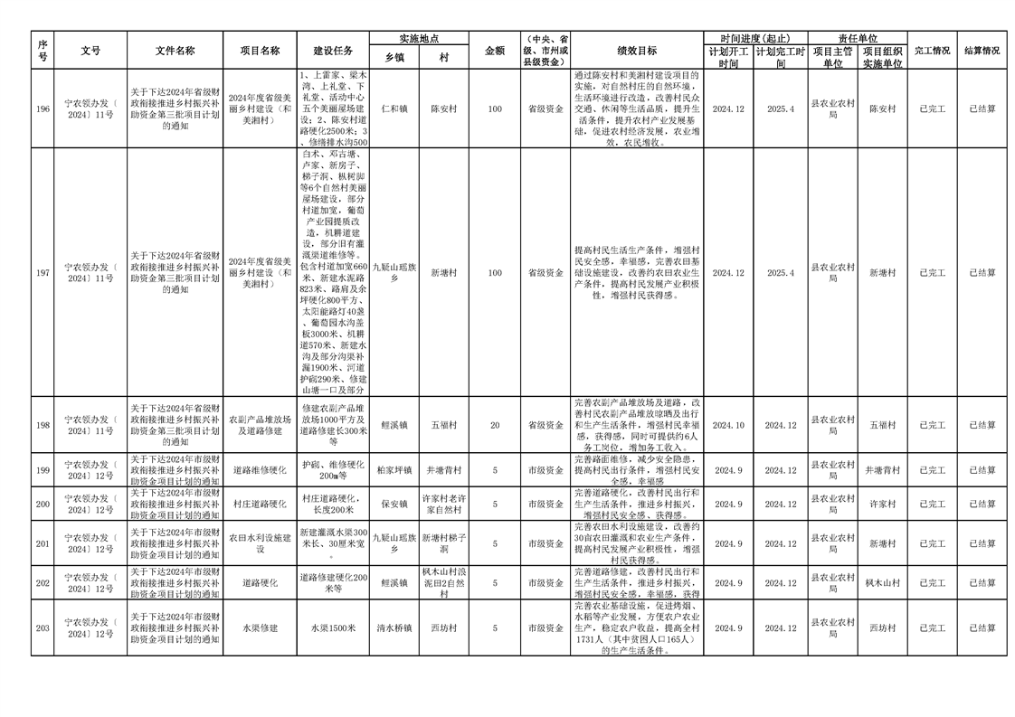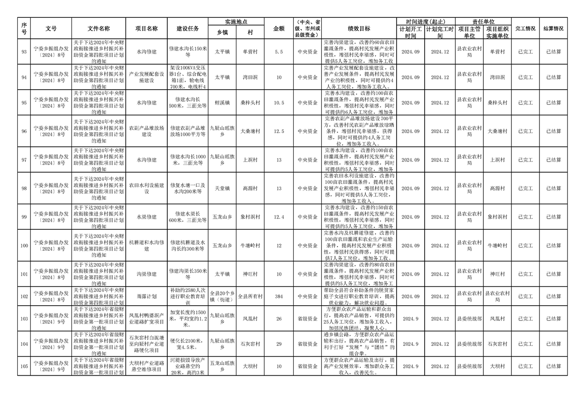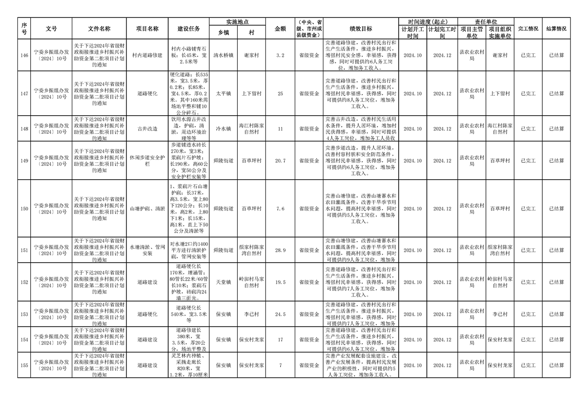 2024年财政衔接乡村振兴补助资金项目计划完成情况